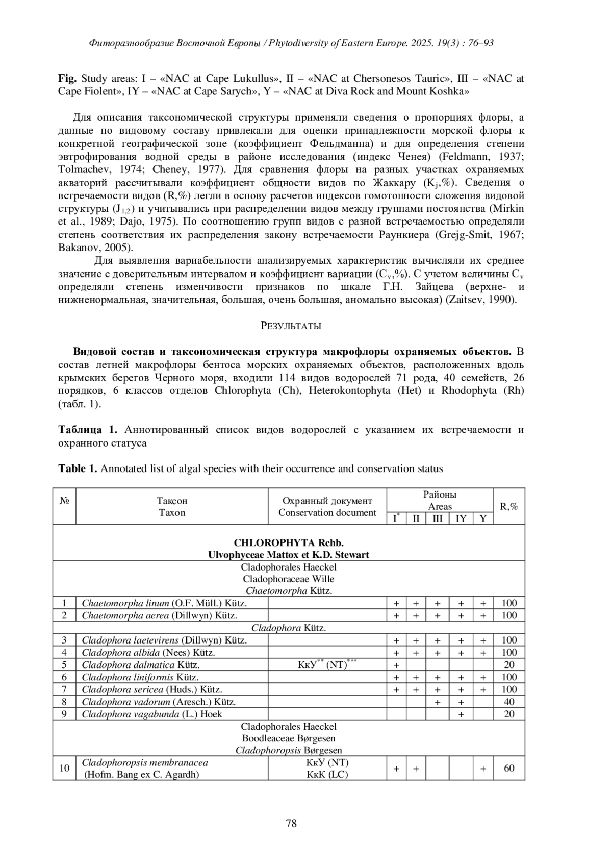22. [Milchakova et al.] Мильчакова Н.А., Александров В.В., Рябогина В.Г. 2019. Состояние ключевых фитоценозов морских охраняемых акваторий и проблемы их сохранения (юго-западный Крым, Черное море). - Биология растений и садоводство: теория, инновации. 149: 113-123. DOI: 10.36305/0201-7997-2019-149-113-123 EDN: SAJCKY