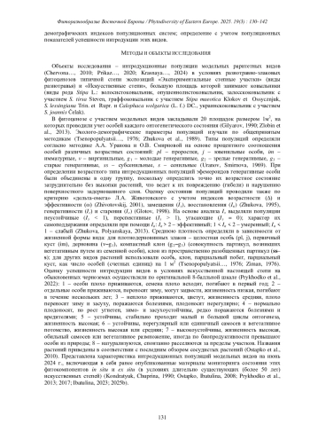 12. [Ibatulina] Ибатулина Ю.В. 2025с. Состояние популяции Stipa pulcherrima C. Koch на территории памятника природы “Балка Горькая” и в условиях искусственной степи в Донецком ботаническом саду. - Бюл. Моск. об-ва исп. природы. Отд. биол. 130 (1): 53-63. EDN: QITPOL