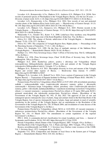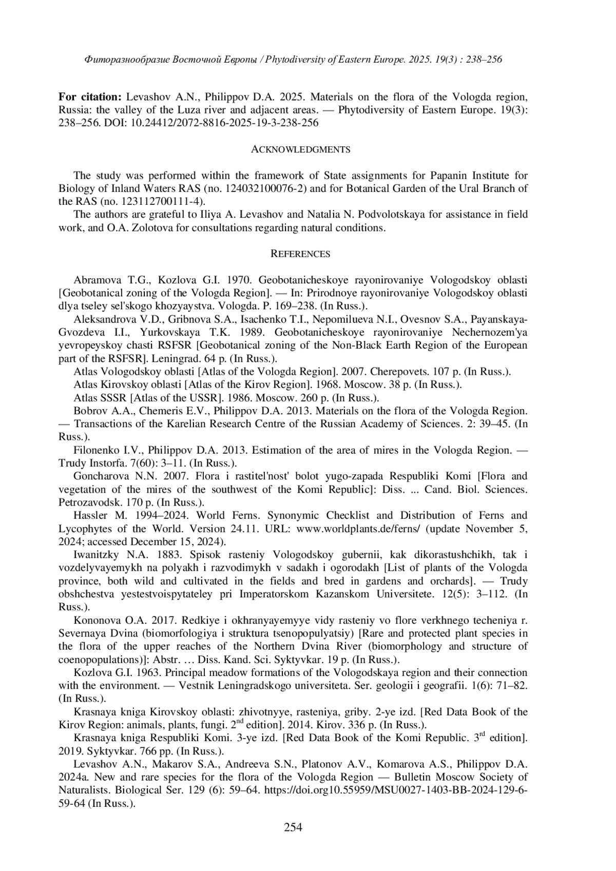 16. [Levashov et al.] Левашов А.Н., Макаров С.А., Комарова А.С., Филиппов Д.А. 2025. Флористический находки в Вологодской области. - Фиторазнообразие Восточной Европы. 19 (1): 80-98. DOI: 10.24412/2072-8816-2025-19-1-80-98 EDN: IJWMRQ