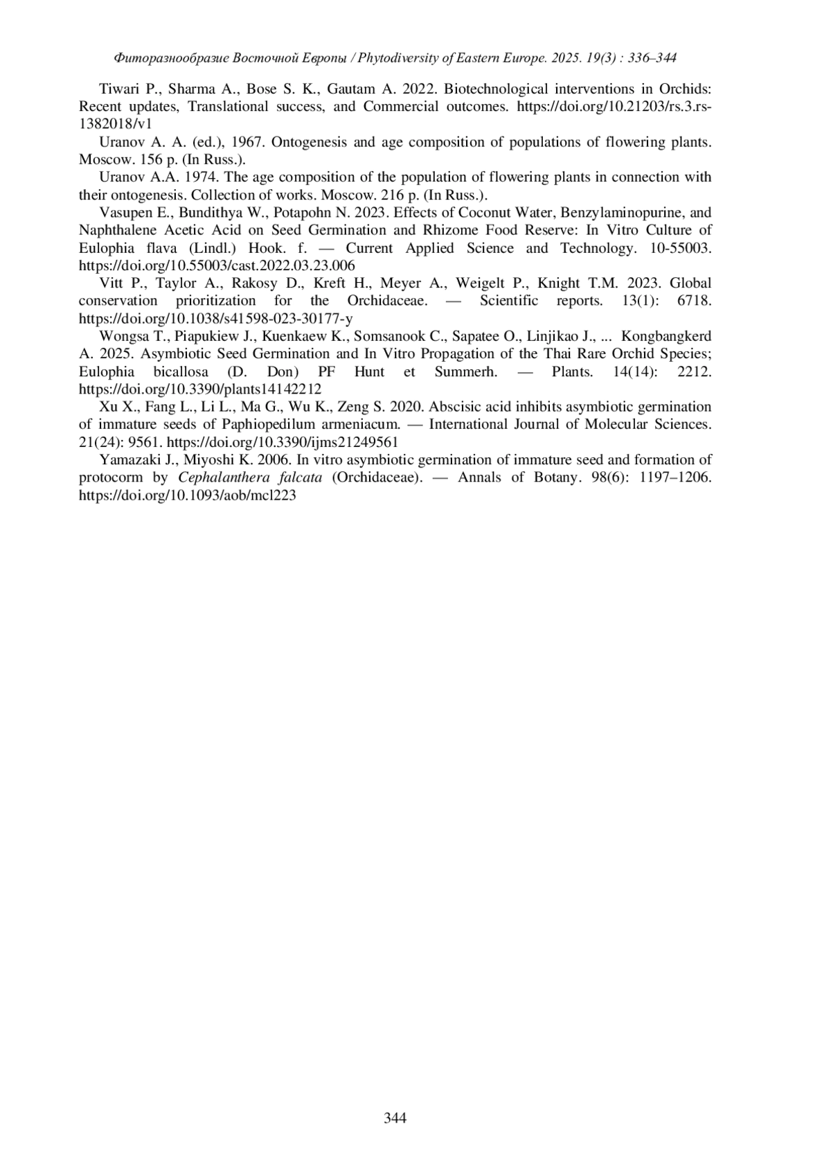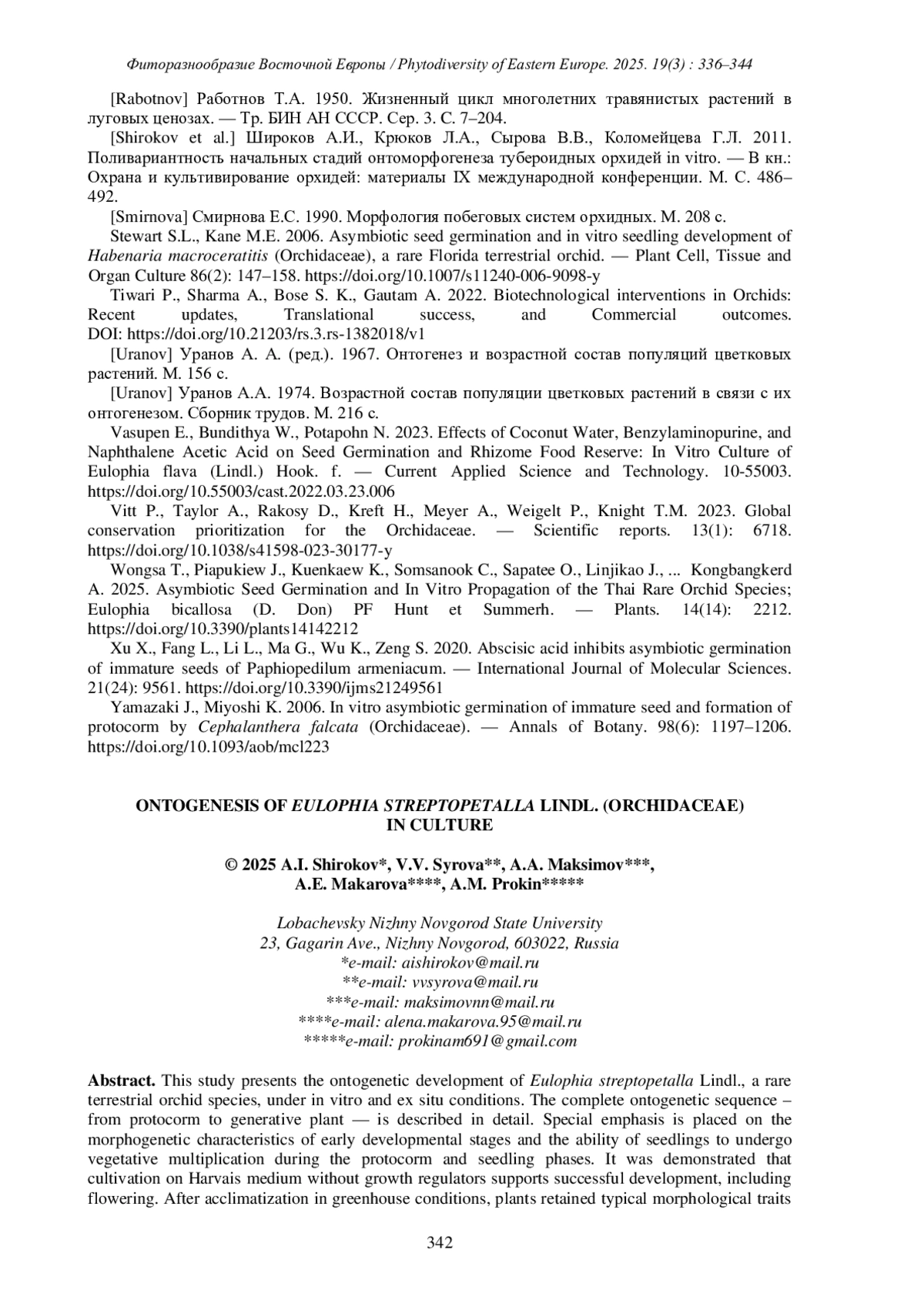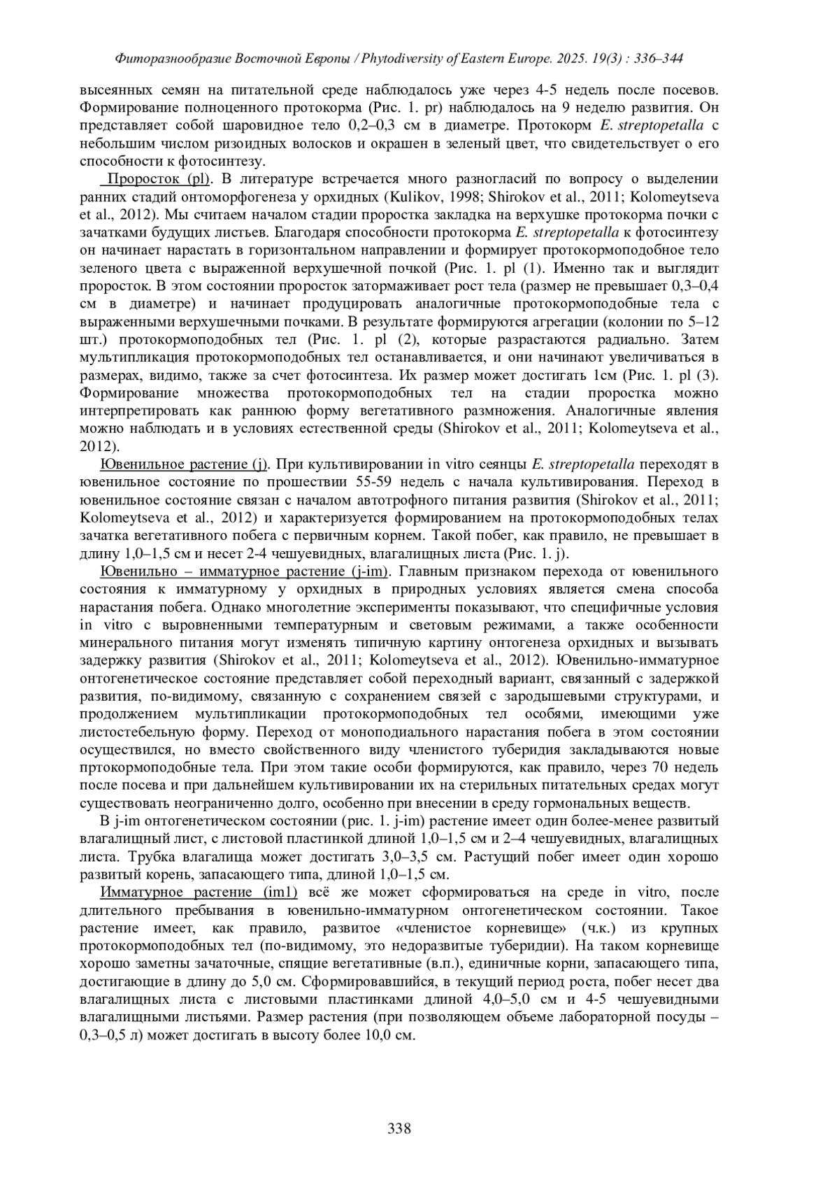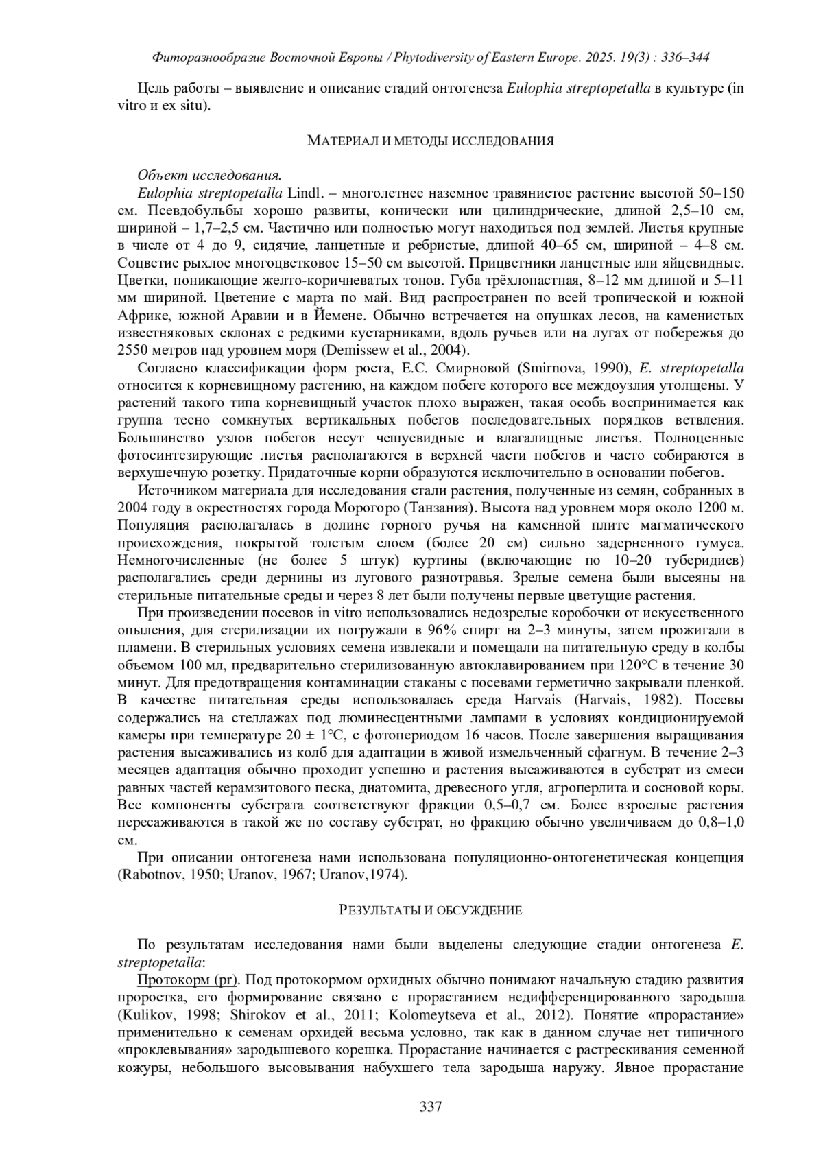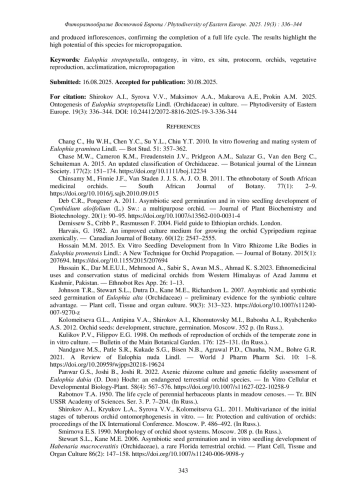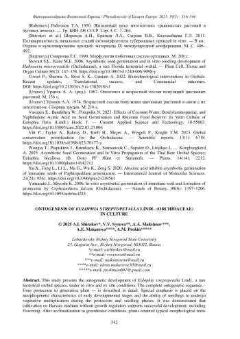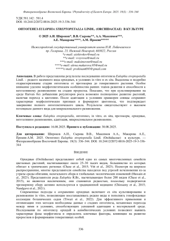 ПРОКИН А.М., МАКАРОВА А.Е., ШИРОКОВ А.И., СЫРОВА В. В., МАКСИМОВ А.А. ОНТОГЕНЕЗ EULOPHIA STREPTOPETALLA LINDL. (ORCHIDACEAE) В КУЛЬТУРЕ // ФИТОРАЗНООБРАЗИЕ ВОСТОЧНОЙ ЕВРОПЫ. 2025. Т. 19 № 3