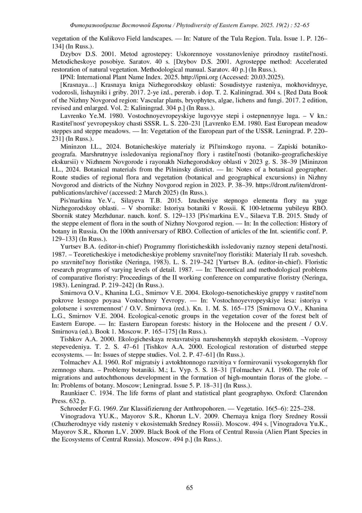 Журнал: ФИТОРАЗНООБРАЗИЕ ВОСТОЧНОЙ ЕВРОПЫ