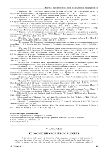 4. Горохова, Д.В. Управление бюджетными рисками субъектов РФ: современный взгляд и перспективы развития [Текст] / Д.В. Горохова // Финансовый журнал. - 2013. - №3. - С. 55-62. EDN: RDGFWB