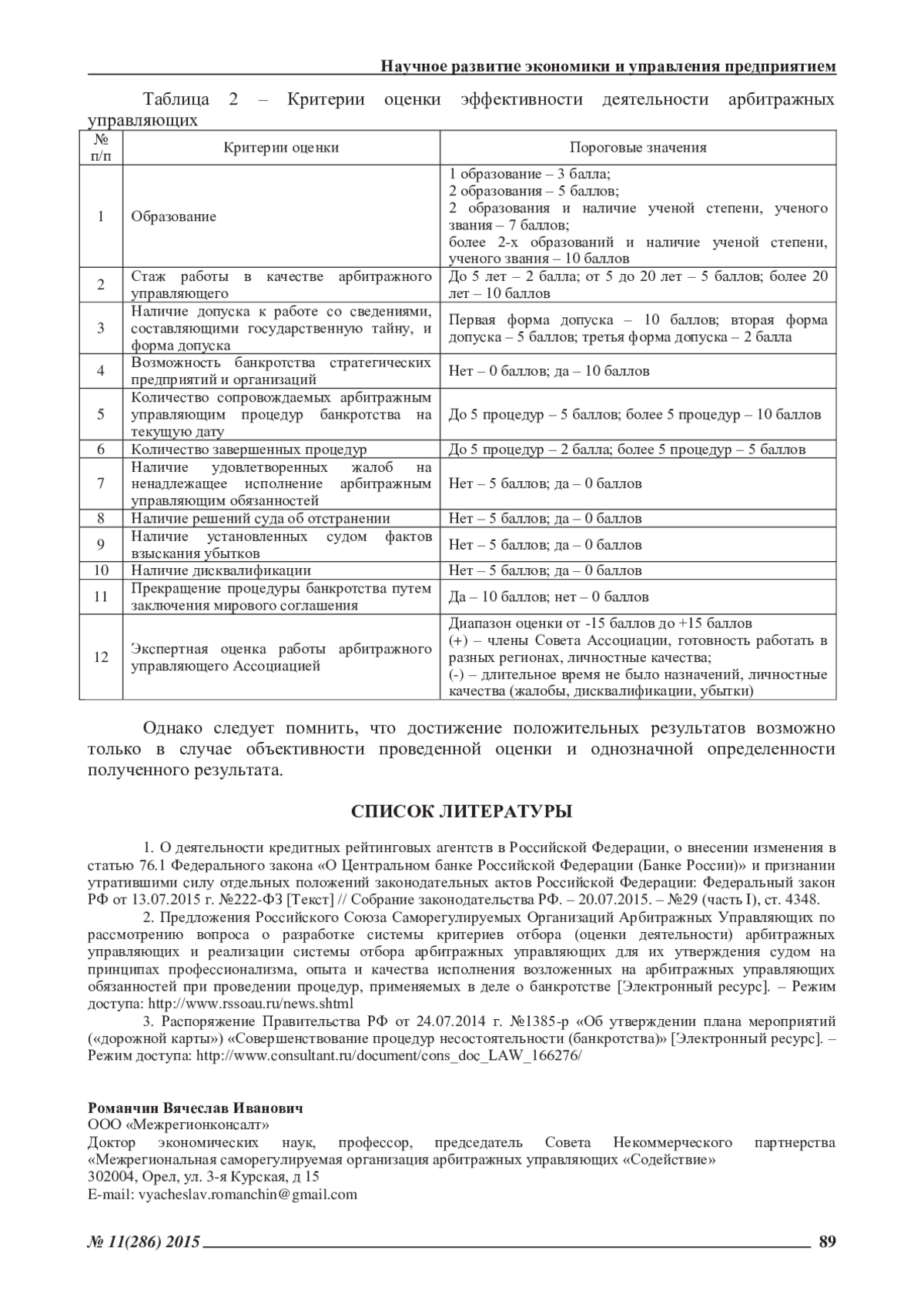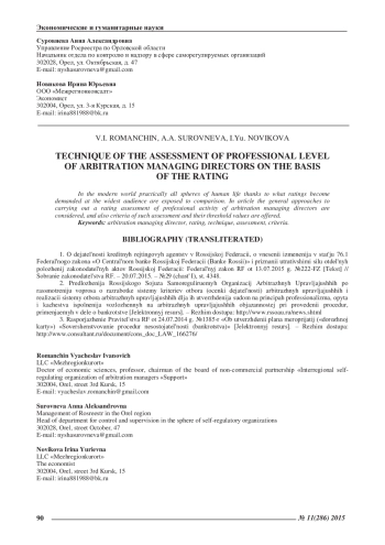 2. Предложения Российского Союза Саморегулируемых Организаций Арбитражных Управляющих по рассмотрению вопроса о разработке системы критериев отбора (оценки деятельности) арбитражных управляющих и реализации системы отбора арбитражных управляющих для их утверждения судом на принципах профессионализма, опыта и качества исполнения возложенных на арбитражных управляющих обязанностей при проведении процедур, применяемых в деле о банкротстве [Электронный ресурс]. - Режим доступа: http://www.rssoau.ru/news.shtml.