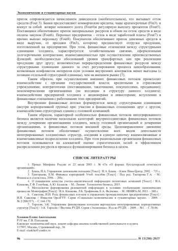 7. Торосян, Э.К. Управление финансовыми потоками вертикально интегрированных корпоративных структур [Текст] / Э.К. Торосян // Вестник РУДН. Серия «Экономика». Изд-во РУДН. - 2009. - №1. - С.78-86.