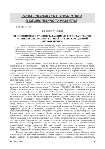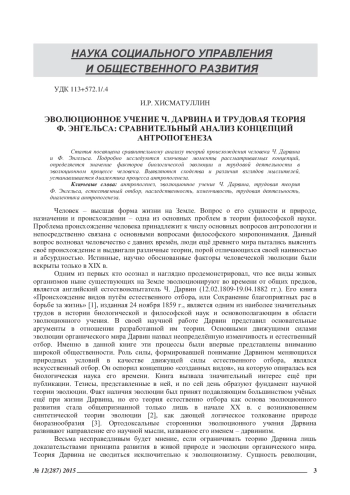 Статья посвящена сравнительному анализу теорий происхождения человека Ч. Дарвина и Ф. Энгельса. Подробно исследуются ключевые моменты рассматриваемых концепций, определяется значение факторов биологической эволюции и трудовой деятельности в эволюционном процессе человека. Выявляются сходства и различия взглядов мыслителей, устанавливается диалектика процесса антропогенеза