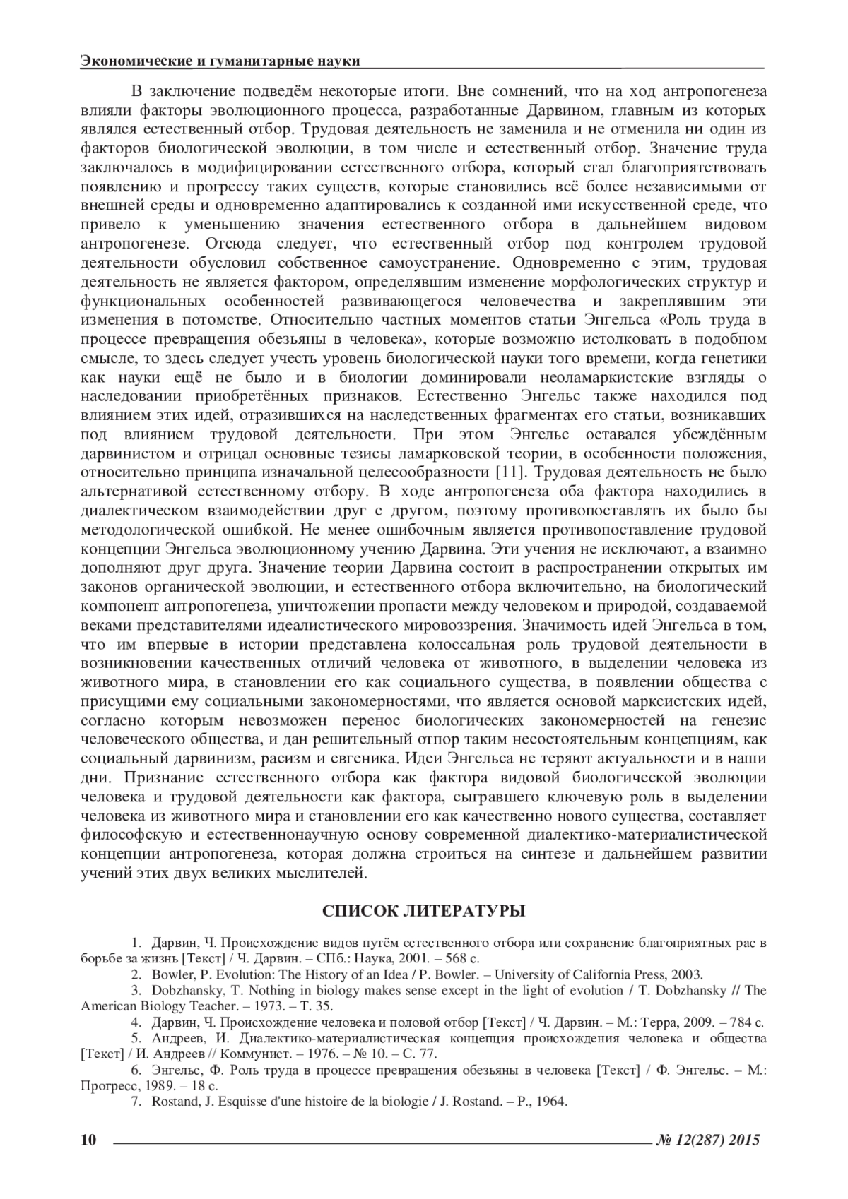 5. Энгельс, Ф. Роль труда в процессе превращения обезьяны в человека [Текст] / Ф. Энгельс. - М.: Прогресс, 1989. - 18 с.