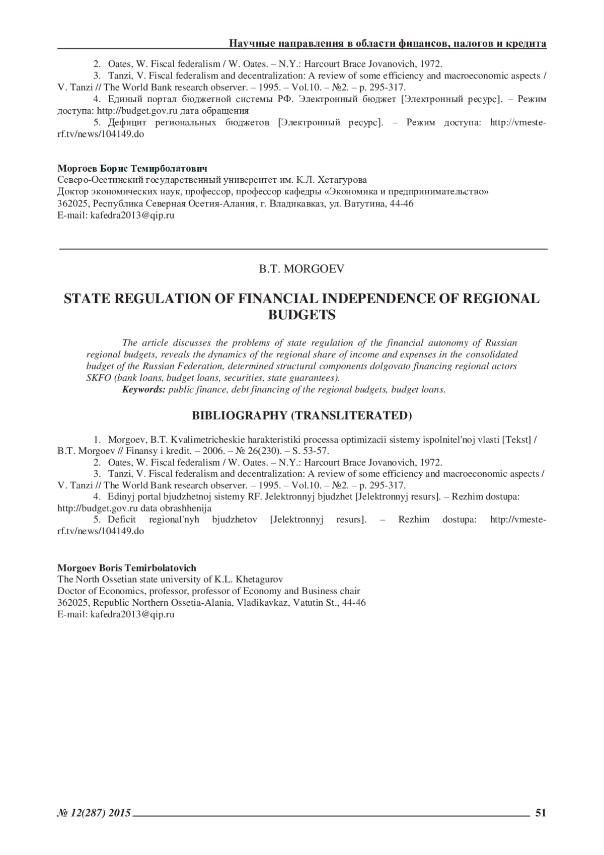 1. Моргоев, Б.Т. Квалиметрические характеристики процесса оптимизации системы исполнительной власти [Текст] / Б.Т. Моргоев // Финансы и кредит. - 2006. - № 26(230). - С. 53-57. EDN: HUUYPN