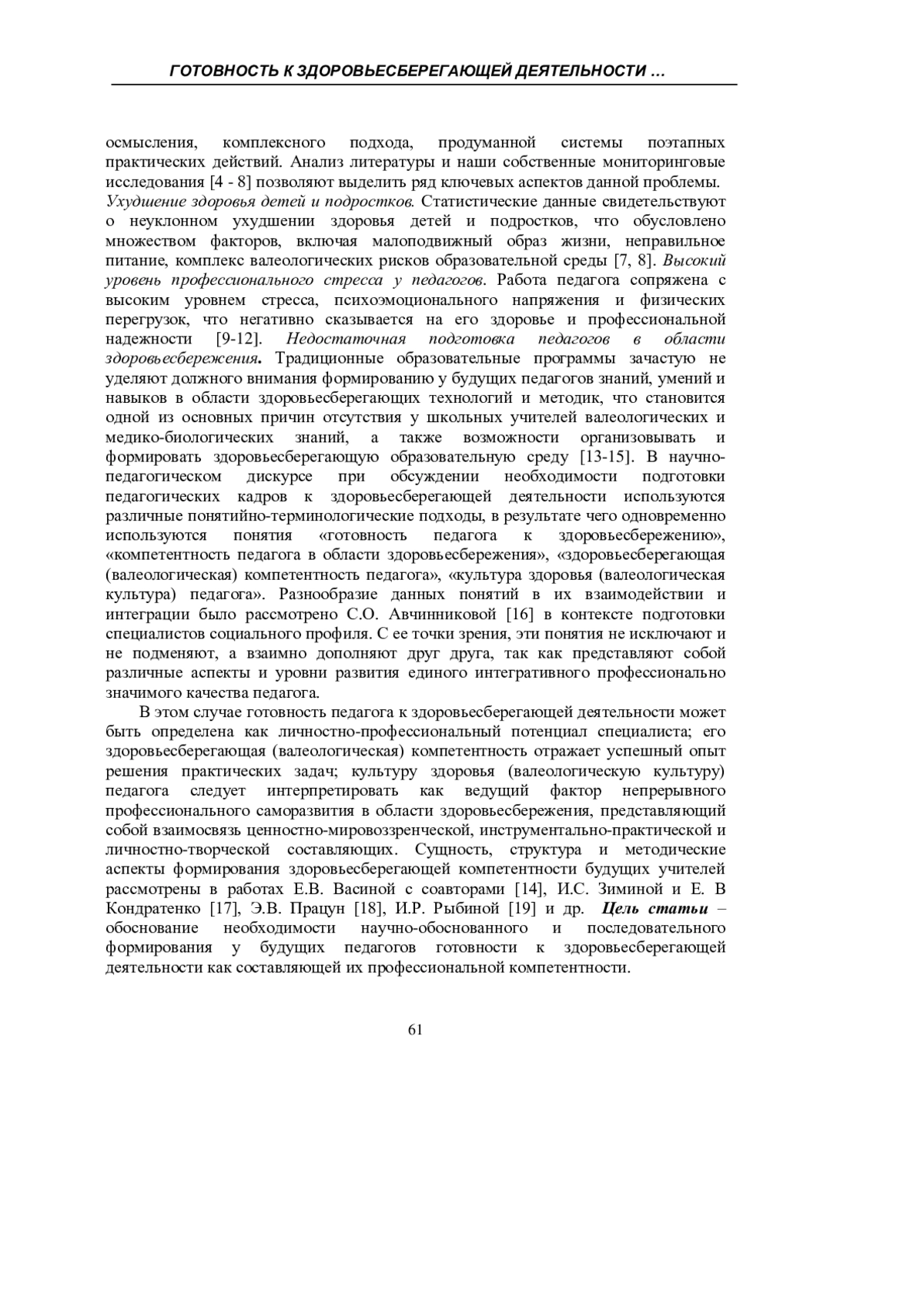 Статья: ГОТОВНОСТЬ К ЗДОРОВЬЕСБЕРЕГАЮЩЕЙ ДЕЯТЕЛЬНОСТИ КАК СОСТАВЛЯЮЩАЯ ПРОФЕССИОНАЛЬНОЙ КОМПЕТЕНТНОСТИ ПЕДАГОГА (2025)