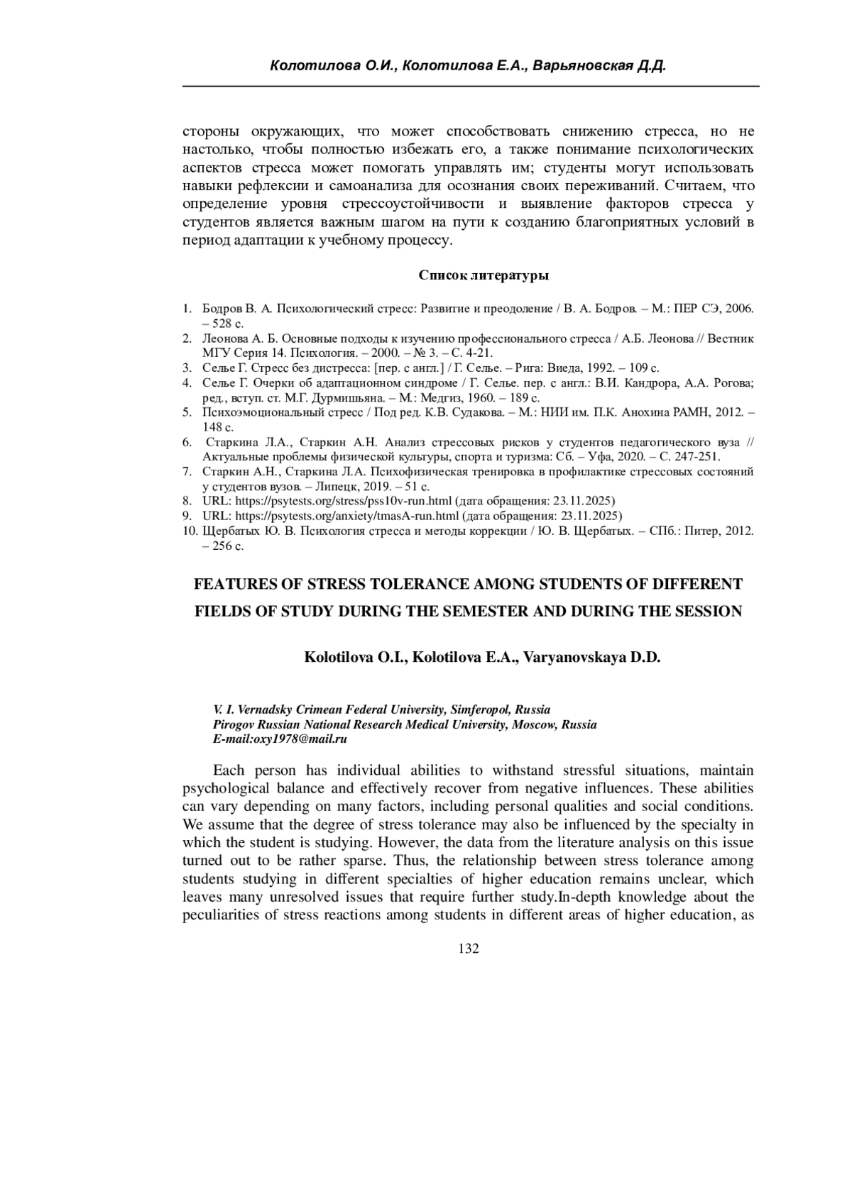 2. Леонова А. Б. Основные подходы к изучению профессионального стресса / А.Б. Леонова // Вестник МГУ Серия 14. Психология. - 2000. - № 3. - С. 4-21.