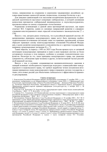 2. Капустин А.Я., Бальхаева С.Б. Конституция и международное право: новая модель взаимодействия // Lex Russica. - 2022. - Т. 75. № 4 (185). - С. 117-127.