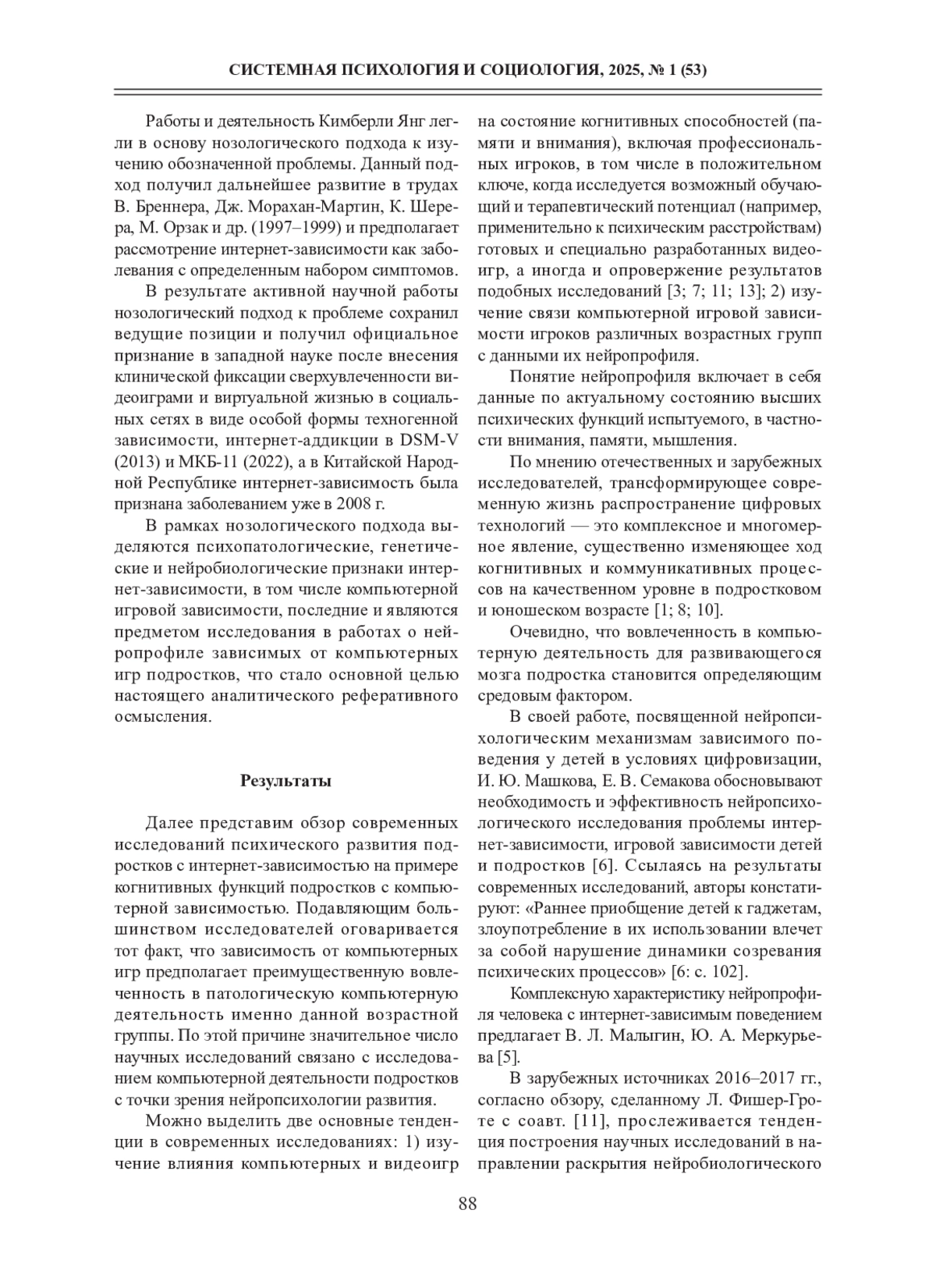 6. Машкова И. Ю., Семакова Е. В. Нейропсихологические механизмы аддиктивного поведения у детей в условиях цифровой среды // Психология. Историко-критические обзоры и современные исследования. 2021. Т. 10. № 4А. С. 101-110. DOI: 10.34670/AR.2021.64.97.002 EDN: RNCTJN