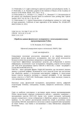 8. Половченко С.В., Привалов В.Е., Чартий П.В., Шеманин В.Г., Восстановление функции распределения частиц по размерам на основе данных многоволнового лазерного зондирования // Оптический журнал. 2016. Т.83. №5. С. 43-49.