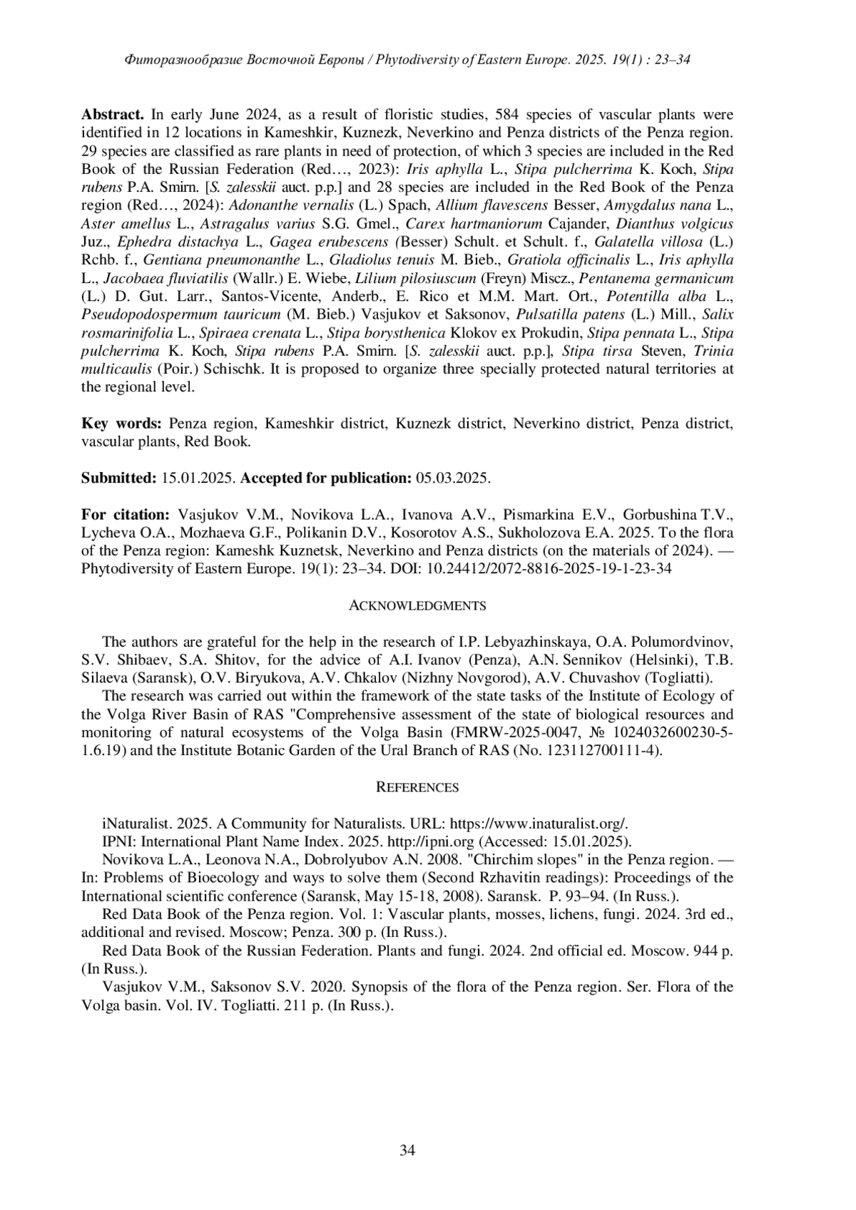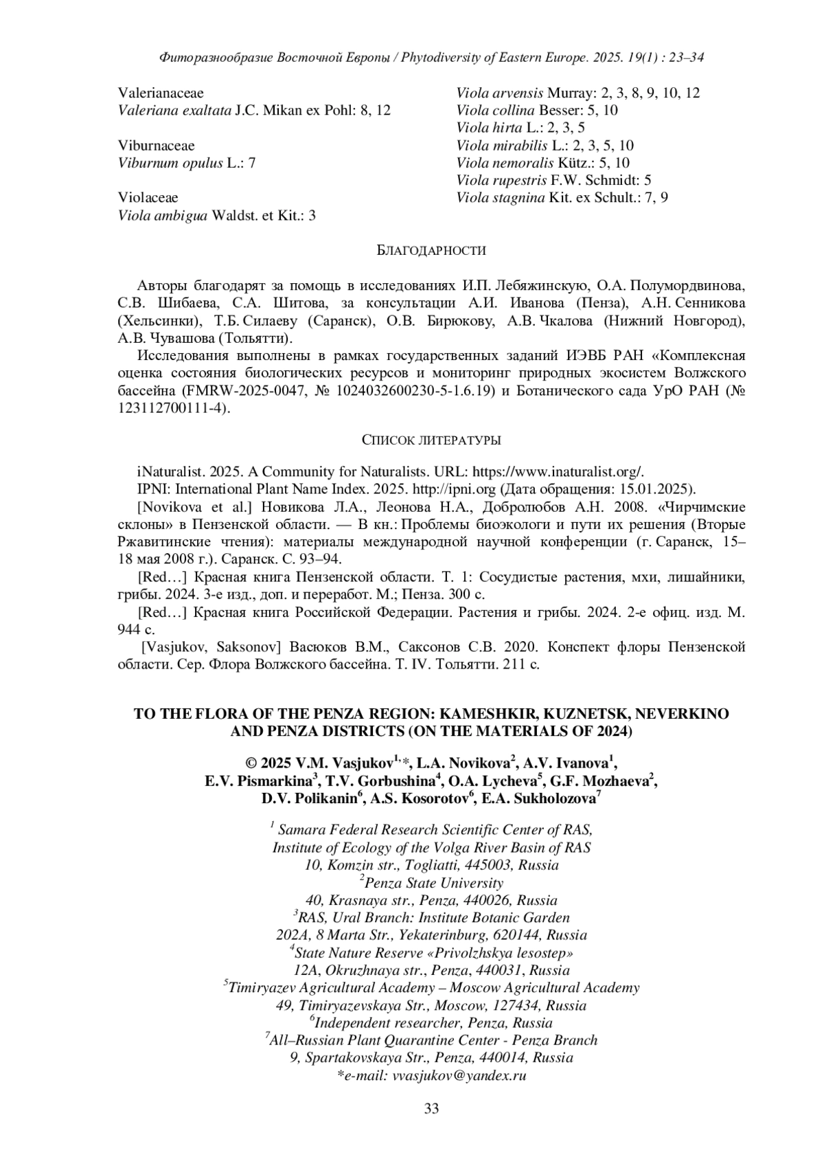 6. [Vasjukov, Saksonov] Васюков В.М., Саксонов С.В. 2020. Конспект флоры Пензенской области. Сер. Флора Волжского бассейна. Т. IV. Тольятти. 211 с. EDN: YDCQEK