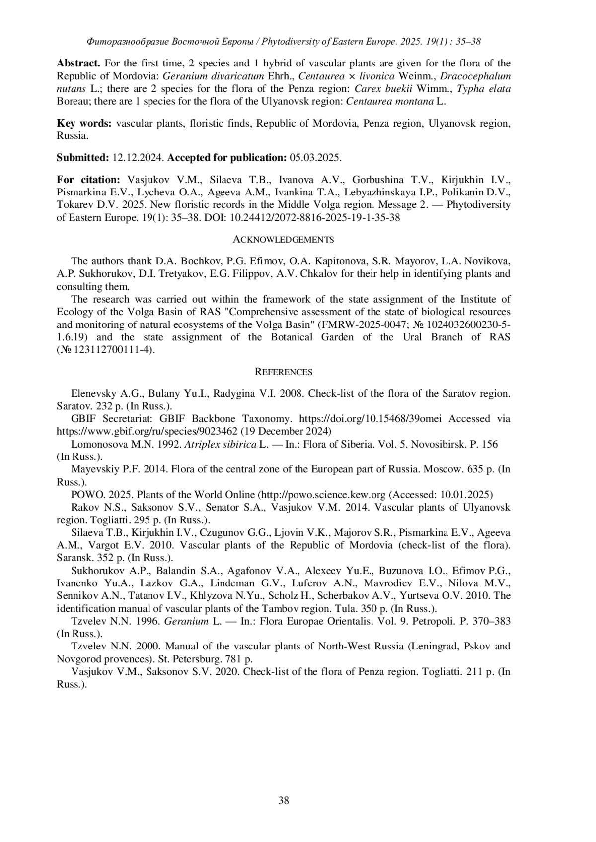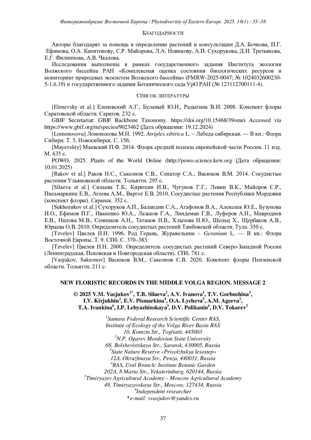 10. [Vasjukov, Saksonov] Васюков В.М., Саксонов С.В. 2020. Конспект флоры Пензенской области. Тольятти. 211 с. EDN: YDCQEK