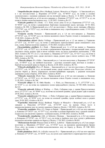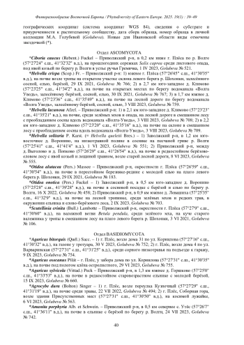 1. [Bolshakov et al.] Большаков С.Ю., Волобуев С.В., Ежов О.Н., Паломожных Е.А., Потапов К.О. 2022. Афиллофороидные грибы европейской части России: аннотированный список видов / Отв. ред. С.Ю. Большаков, С.В. Волобуев. СПб. 578 с. EDN: URFJLF