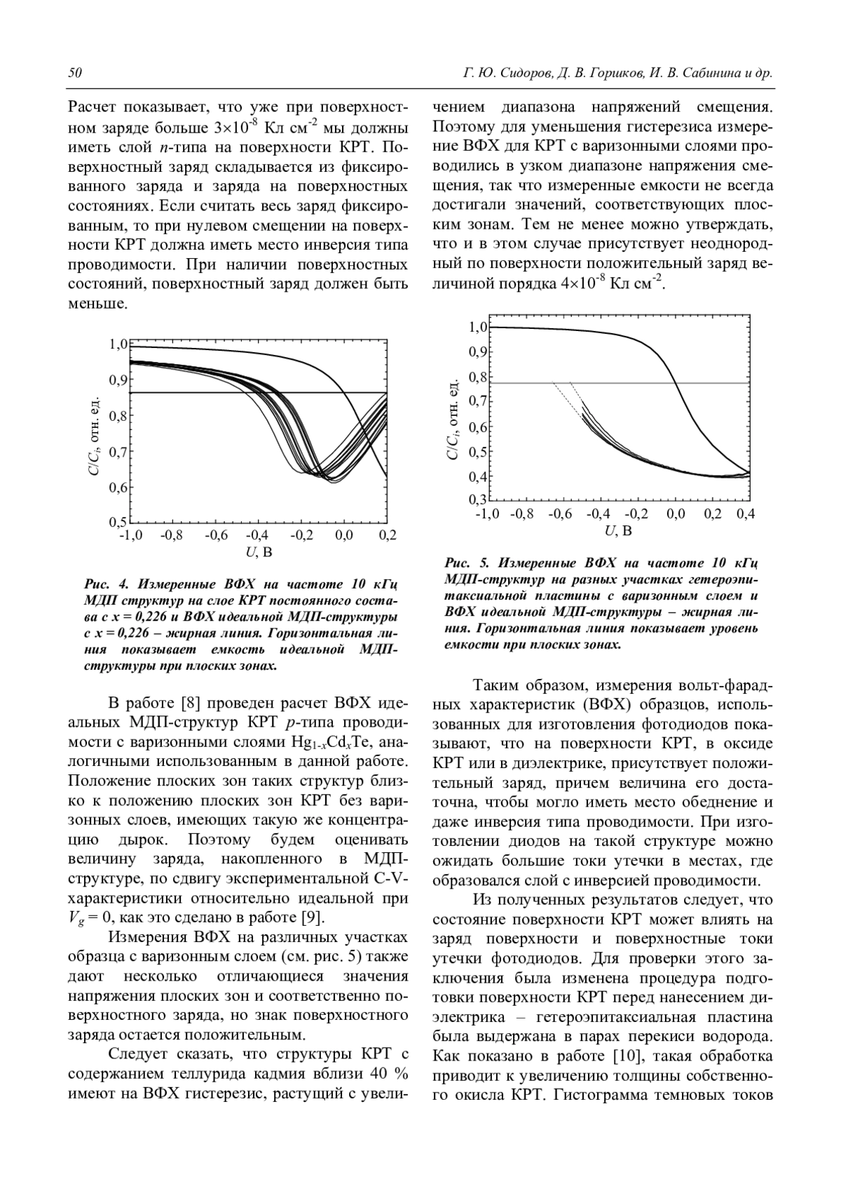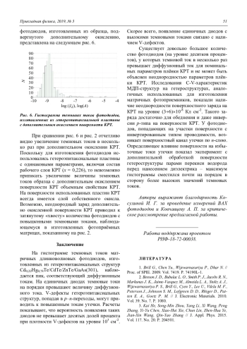 2. Benson J. D., Bubulac L. O., Smith P. J., Jacobs R. N., Markunas J. K., Jaime-Vasquez M., Almeida L. A., Stoltz A. J., Wijewarnasuriya P. S., Brill G., Cyen Y., Lee U., Vilela M. F., Peterson J., Johnson S. M., Lofgreen D. D., Rhiger D., Patten E. A., Goetz P. M. // J. Electronic Materials. 2010. Vol. 39. No. 7. P. 1080. 3. Kai He, Song-Min Zhou, Yang Li, Xi Wang, Peng Zhang, Yi-Yu Chen, Xiao-Hui Xie, Chun Lin, Zhen-Hua Ye, Jian-Xin Wang, Qin-Yao Zhang // J. Appl. Phys. 2015. Vol. 117. No. 20. P. 204501. Г. Ю. Сидоров, Д. В. Горшков, И. В. Сабинина и др. 52