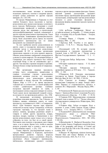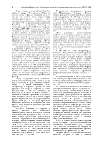 В настоящей статье рассматривается торговое положение Хорасана и Мавераннахра в эпоху Темуридов, которое является одним из составных элементов экономики Темуридов. В данной статье на основе имеющихся в источниках данных и с использованием описательно-аналитического подхода рассмотрено торговое положение региона от возвышения Тимура до конца правления Байкары. В статье уделяется внимание такому основному вопросу, какова была торговая ситуация в Хорасане и Мавераннахра в период Темуридов? В данной статье показано, что внимание к категории торговли с точки зрения Темуридских князей, особое географическое положение этих двух важных регионов, разнообразие товаров и рост нескольких крупных городов в этих регионах, представляют собой комплекс эффективных факторов для процветания торговли в Хорасане и за его пределами. Торговля в упомянутых областях стала динамичной благодаря вышеуказанным факторам, а также под воздействием экономической политики князей Темуридов. Таким образом, мы сталкиваемся с относительным процветанием компонентов торговли в регионе в период Темуридов.