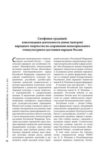 Статья: Симфония традиций: консолидация деятельности домов (центров) народного творчества по сохранению нематериального этнокультурного достояния народов России (2025)