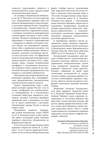 УРКУНОВА А. Р. СИМФОНИЯ ТРАДИЦИЙ: КОНСОЛИДАЦИЯ ДЕЯТЕЛЬНОСТИ ДОМОВ (ЦЕНТРОВ) НАРОДНОГО ТВОРЧЕСТВА ПО СОХРАНЕНИЮ НЕМАТЕРИАЛЬНОГО ЭТНОКУЛЬТУРНОГО ДОСТОЯНИЯ НАРОДОВ РОССИИ // ТРАДИЦИОННАЯ КУЛЬТУРА. 2025. № 3, ТОМ 26