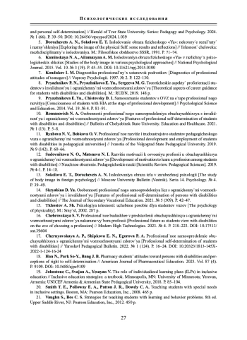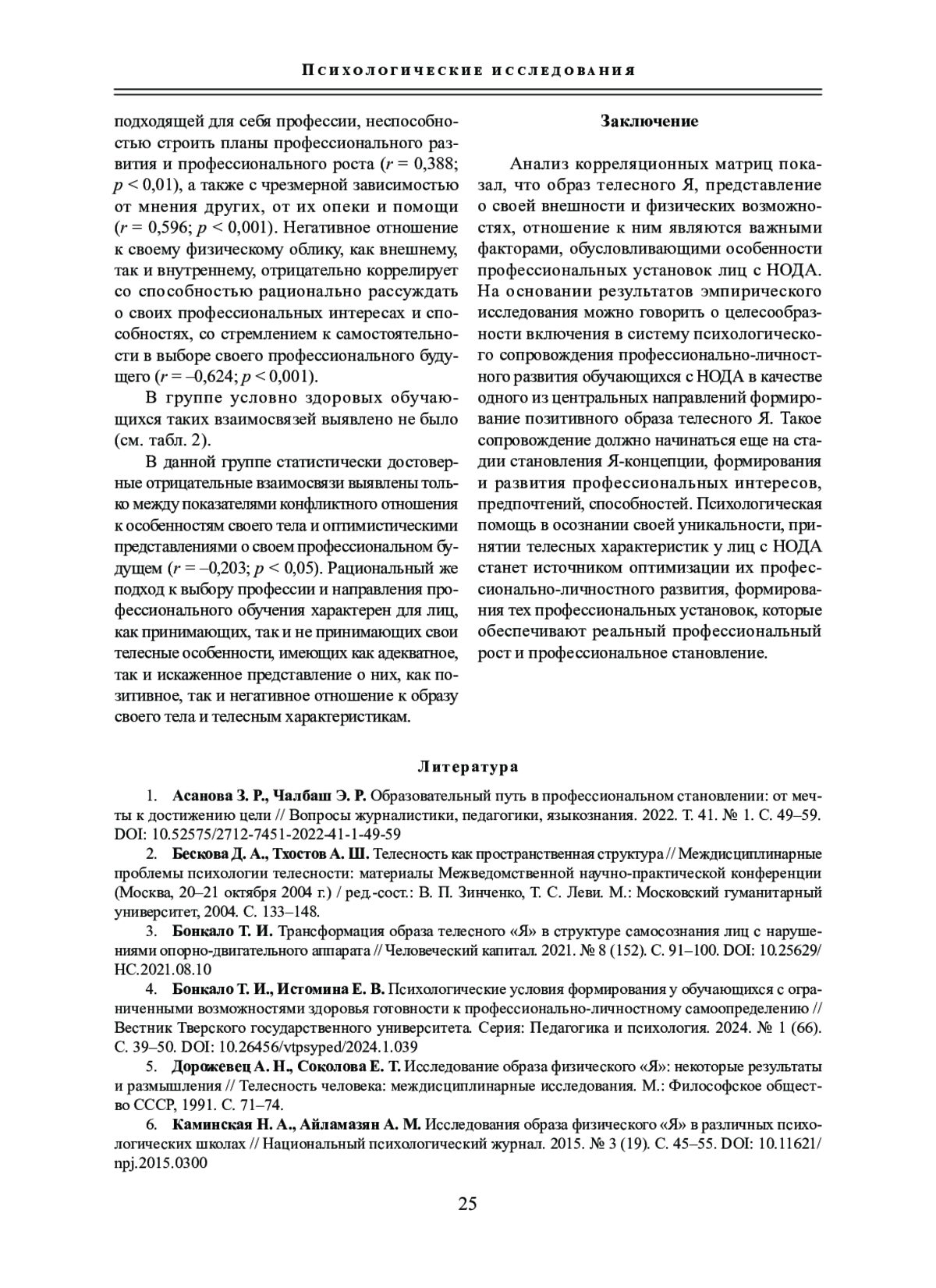 Статья: ВЗАИМОСВЯЗЬ ПРОФЕССИОНАЛЬНЫХ УСТАНОВОК И ОБРАЗА ТЕЛЕСНОГО Я ЛИЦ С НАРУШЕНИЯМИ ОПОРНО-ДВИГАТЕЛЬНОГО АППАРАТА (2024)