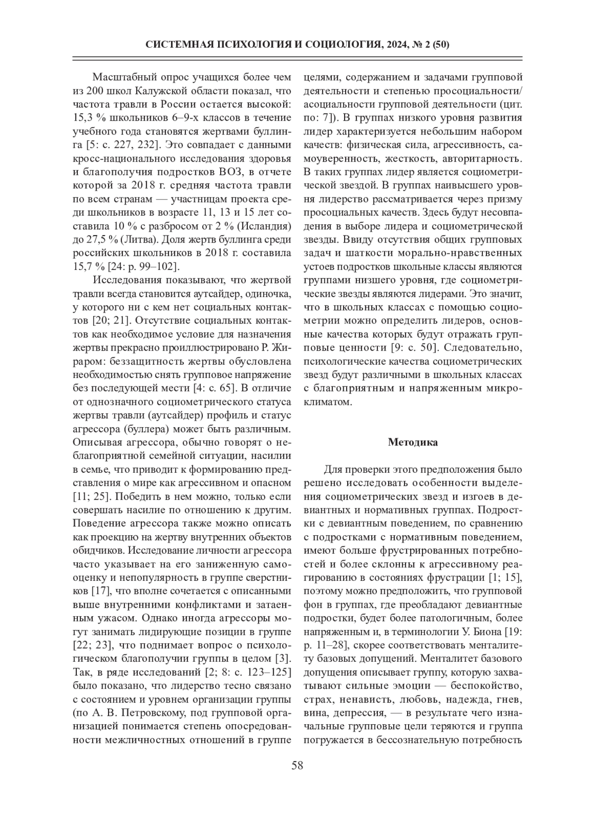 18. Шурлакова Н. А. Самооценка и социометрический статус старших подростков с различным уровнем агрессии // Молодёжь и наука: актуальные проблемы педагогики и психологии. 2020. № 5. С. 184-194. EDN: QMZRAS