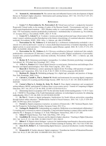 32. Tang C. M., Chaw L. Y. Digital literacy: a prerequisite for effective learning in a blended learning environment? // Electronic Journal of e-Learning. 2016. Vol. 14 (1). P. 54-65.