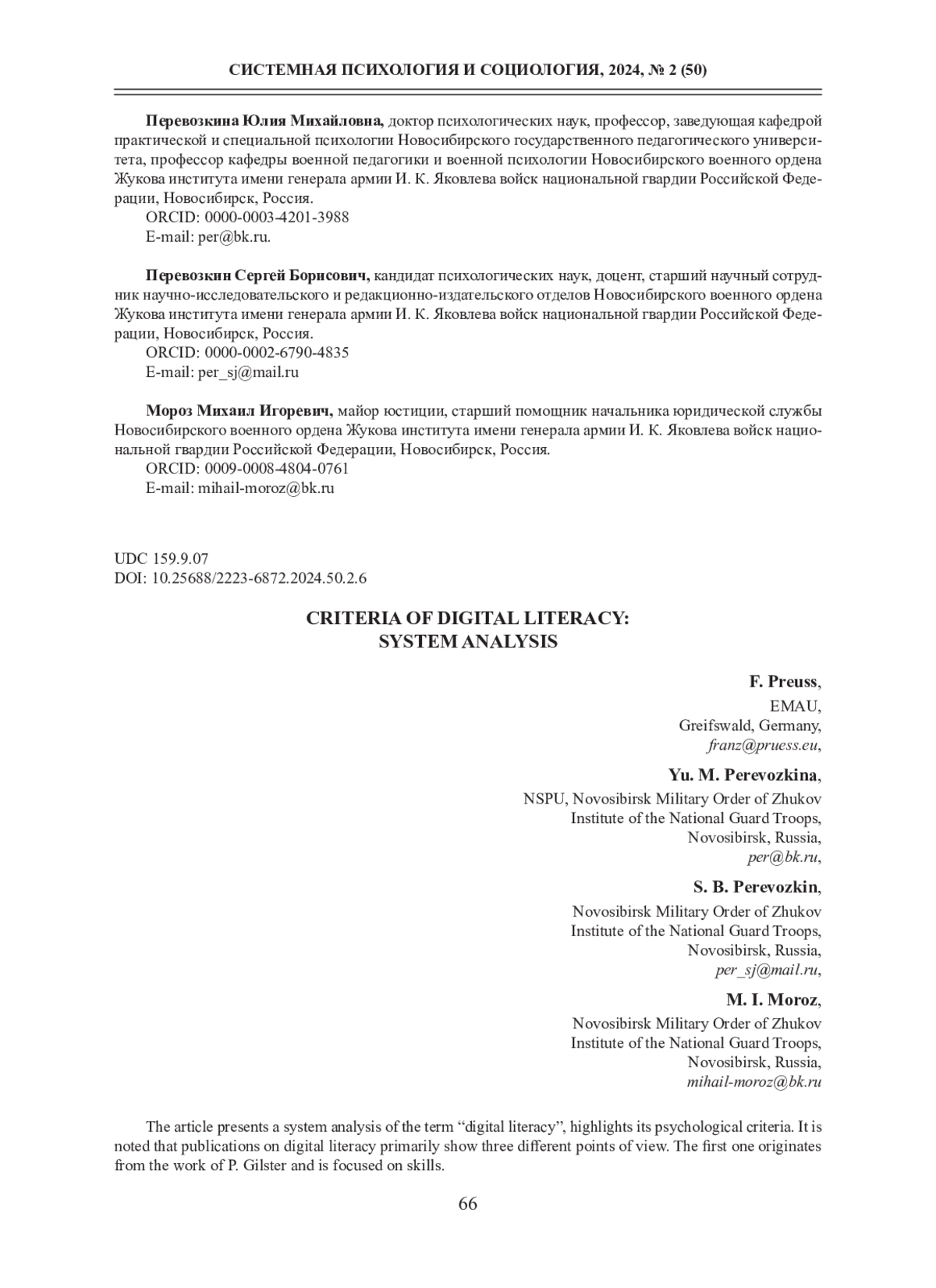 4. Перевозкина, Ю. М. Цифровая социализация личности: исследовательские задачи, практические возможности: Учебное пособие для преподавателей, аспирантов, магистров, специалистов, бакалавров, практических психологов / Ю. М. Перевозкина, А. С. Тишкова. - Новосибирск: Новосибирский государственный педагогический университет, 2023. ISBN: 978-5-00104-917-3 EDN: LUCVVS