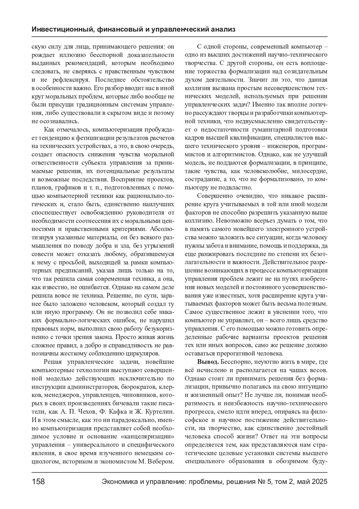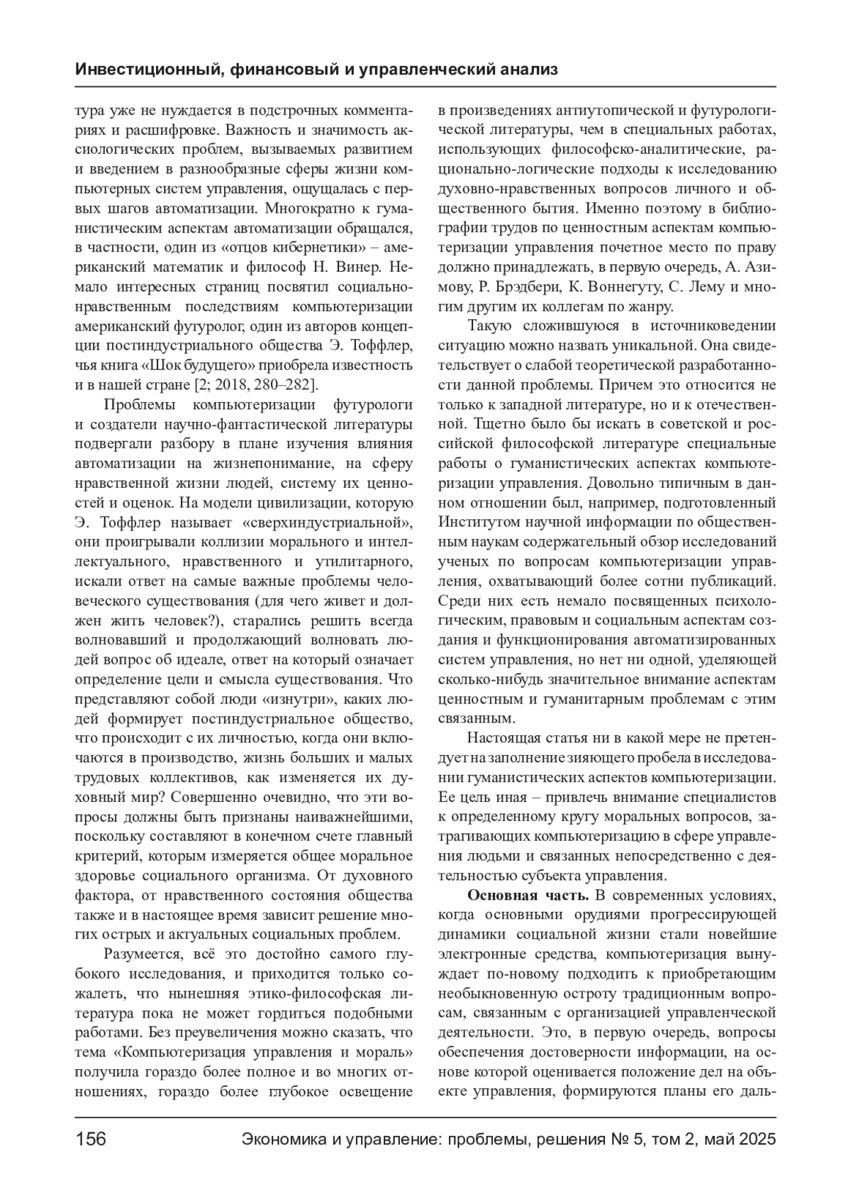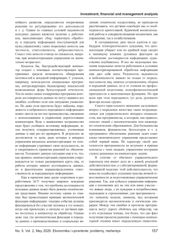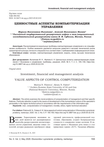 Рассматриваются моральные проблемы компьютеризации управления и их специфические особенности. Особое внимание уделяется вопросам развития в высшей технической школе гуманитарной культуры личности специалиста в соответствии с требованиями информационной эпохи.