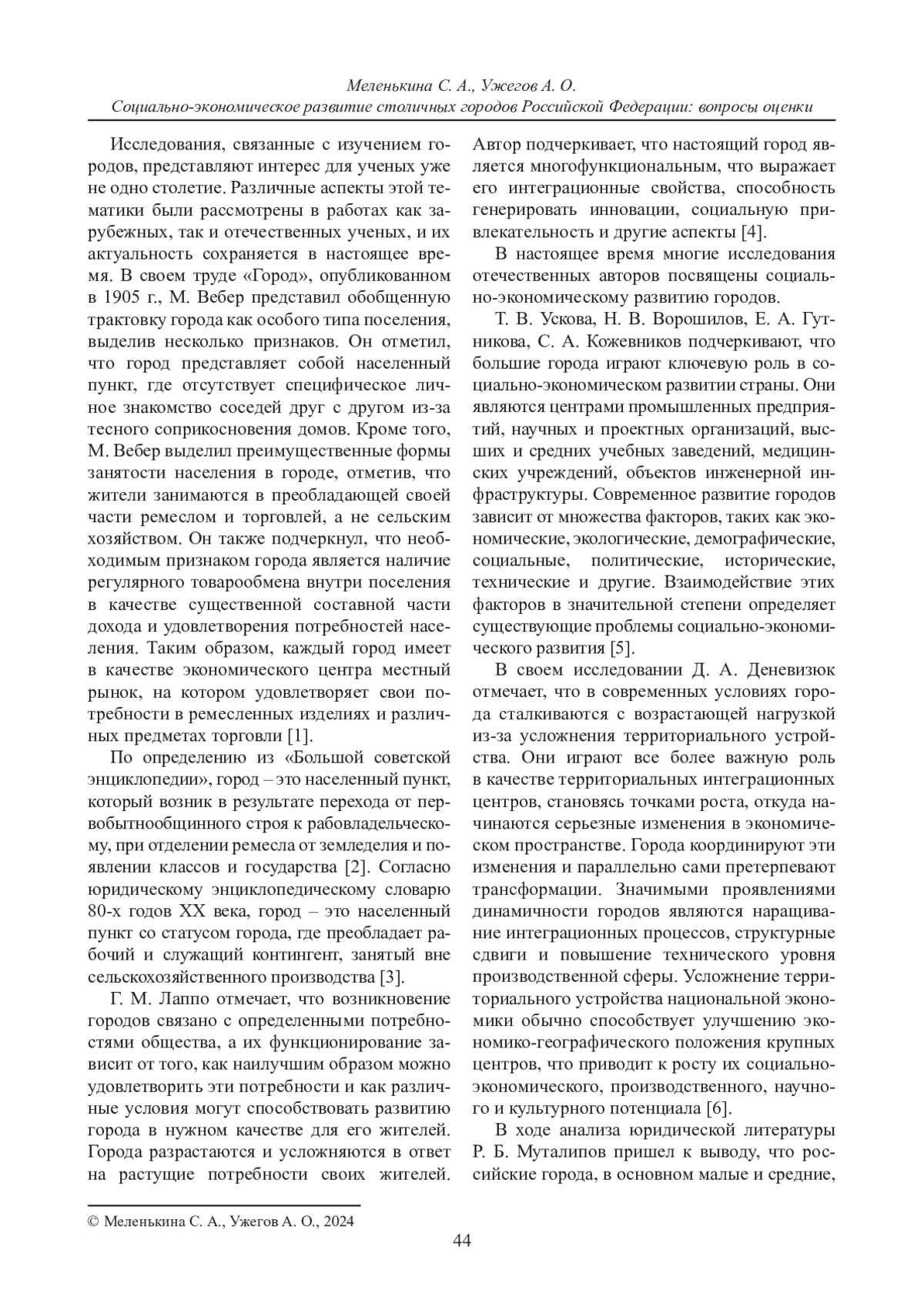 19. Землянский Д. Ю., Махрова А. Г., Медведникова Д. М. Методические подходы к составлению комплексных индексов социально-экономического развития городов // Вестник Московского университета. Серия 5. География. 2020. № 4. С. 21-31.