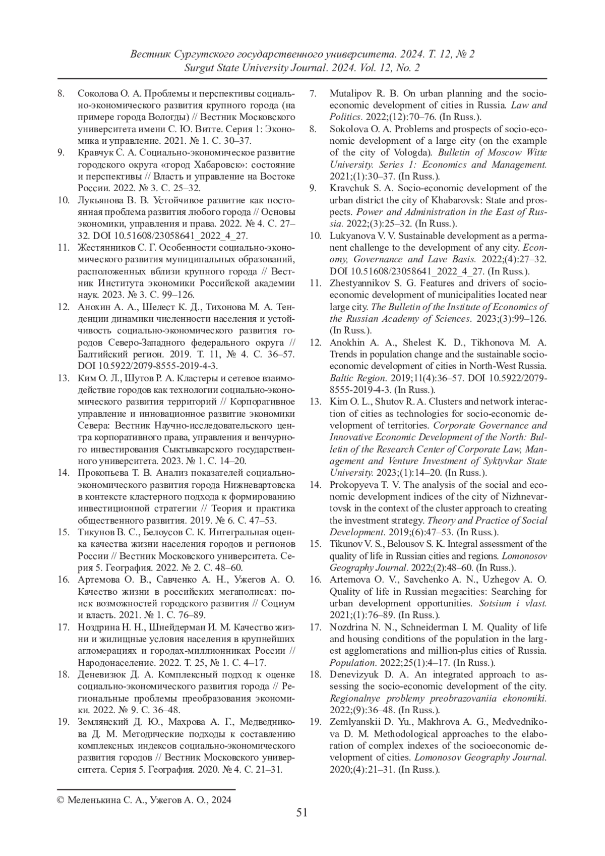 15. Тикунов В. С., Белоусов С. К. Интегральная оценка качества жизни населения городов и регионов России // Вестник Московского университета. Серия 5. География. 2022. № 2. С. 48-60.