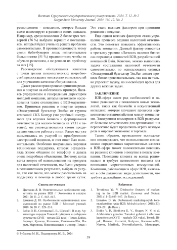 1. Цветкова Я. В. Отличительные особенности маркетинга на рынке B2B // Экономика и социум. 2021. № 11-2. С. 643-647.