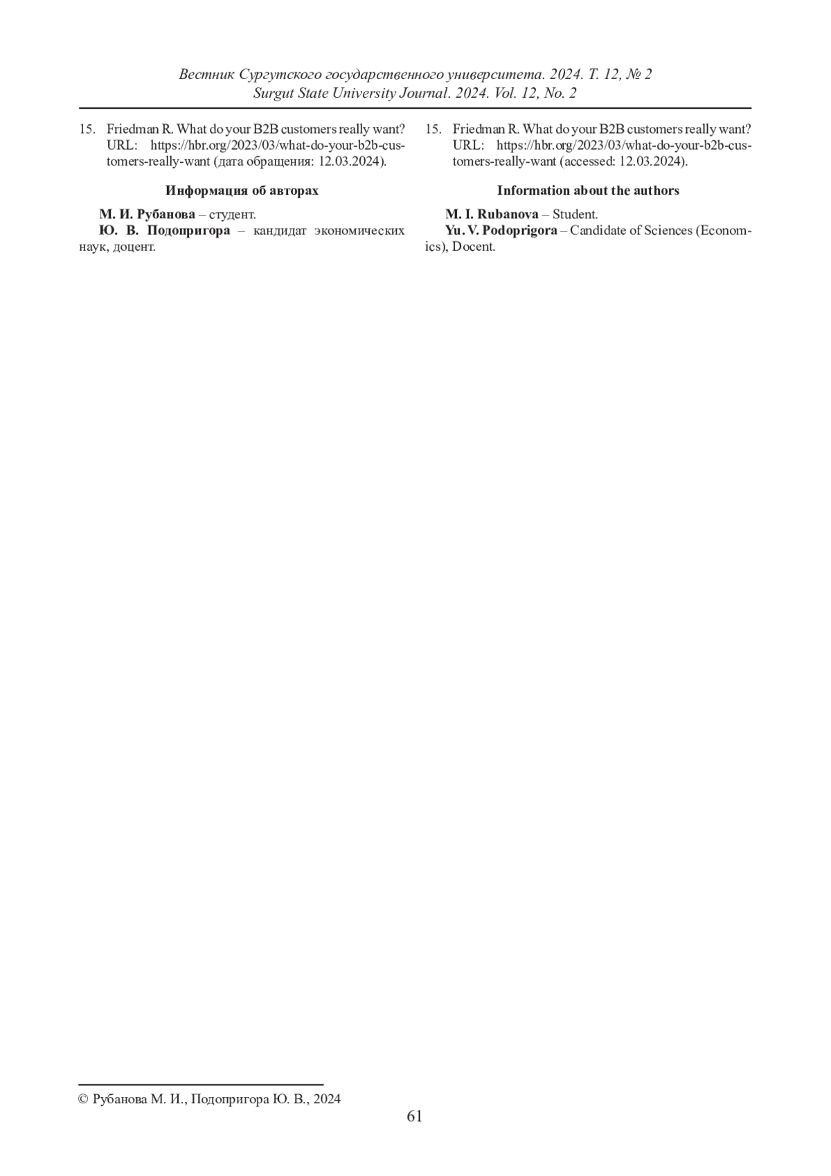 15. Friedman R. What do your B2B customers really want? URL: https://hbr.org/2023/03/what-do-your-b2b-customers-really-want (дата обращения: 12.03.2024).