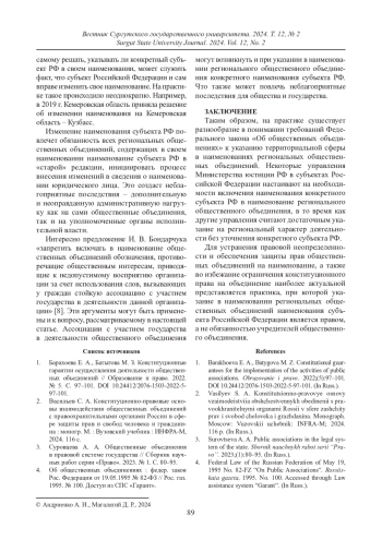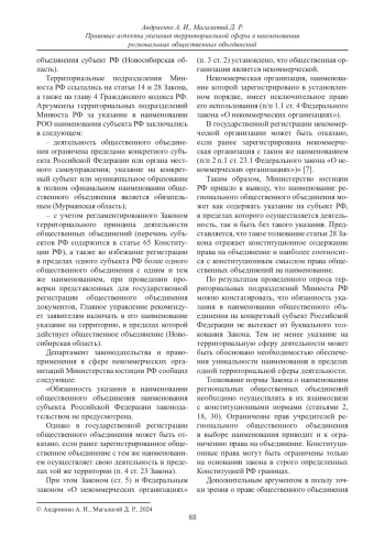 Статья: ПРАВОВЫЕ АСПЕКТЫ УКАЗАНИЯ ТЕРРИТОРИАЛЬНОЙ СФЕРЫ В НАИМЕНОВАНИИ РЕГИОНАЛЬНЫХ ОБЩЕСТВЕННЫХ ОБЪЕДИНЕНИЙ (2024)