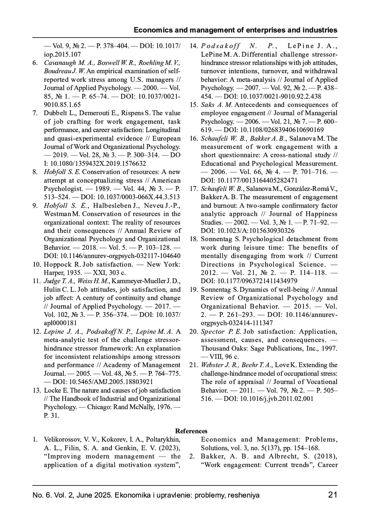 6. Cavanaugh M. A., Boswell W. R., Roehling M. V., Boudreau J. W. An empirical examination of selfreported work stress among U.S. managers // Journal of Applied Psychology. - 2000. - Vol. 85, № 1. - P. 65-74. - 10.1037/0021- 9010.85.1.65. DOI: 10.1037/0021-9010.85.1.65 EDN: FNKEXH