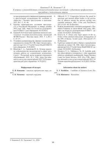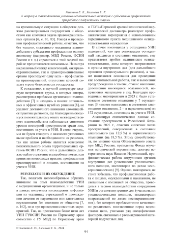 Статья: К ВОПРОСУ О ВЗАИМОДЕЙСТВИИ УГОЛОВНО-ИСПОЛНИТЕЛЬНЫХ ИНСПЕКЦИЙ С СУБЪЕКТАМИ ПРОФИЛАКТИКИ ПРИ РАБОТЕ С ПОДУЧЕТНЫМИ ЛИЦАМИ (2024)