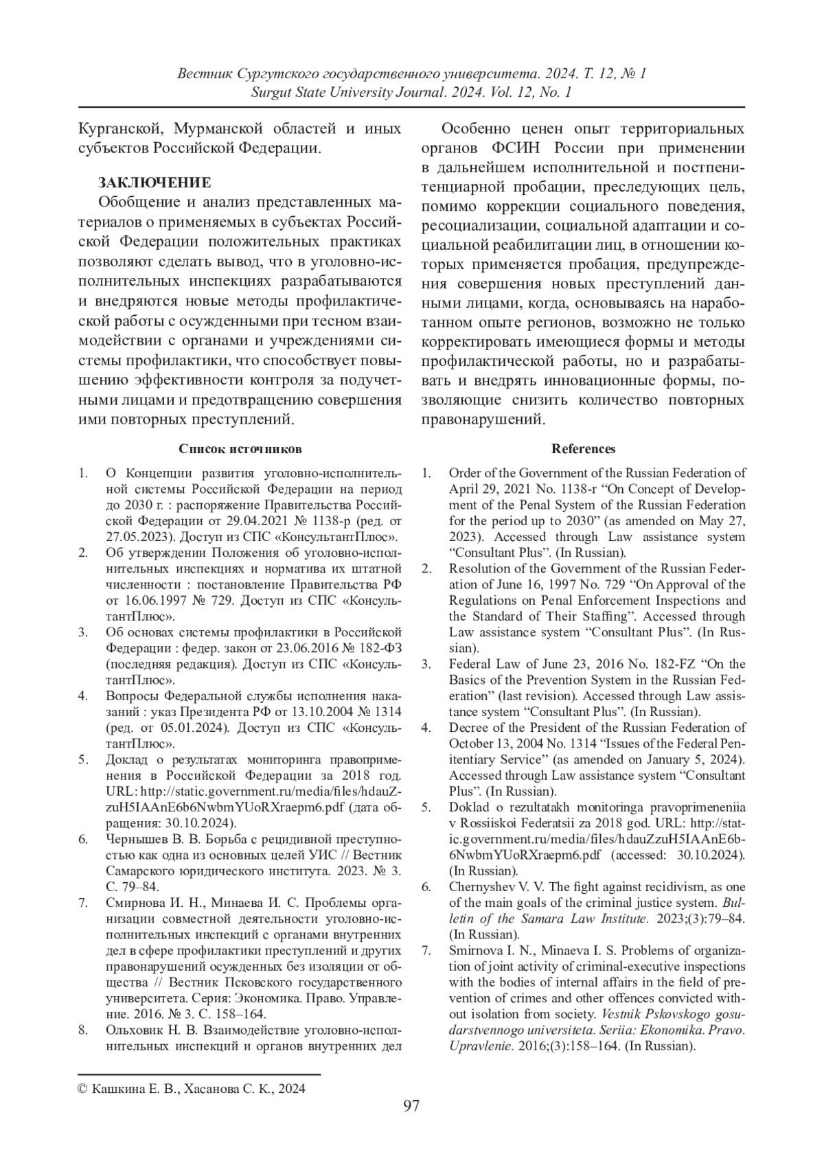 КАШКИНА Е. В., ХАСАНОВА С. К. К ВОПРОСУ О ВЗАИМОДЕЙСТВИИ УГОЛОВНО-ИСПОЛНИТЕЛЬНЫХ ИНСПЕКЦИЙ С СУБЪЕКТАМИ ПРОФИЛАКТИКИ ПРИ РАБОТЕ С ПОДУЧЕТНЫМИ ЛИЦАМИ // ВЕСТНИК СУРГУТСКОГО ГОСУДАРСТВЕННОГО УНИВЕРСИТЕТА. 2024. ТОМ 12, № 1