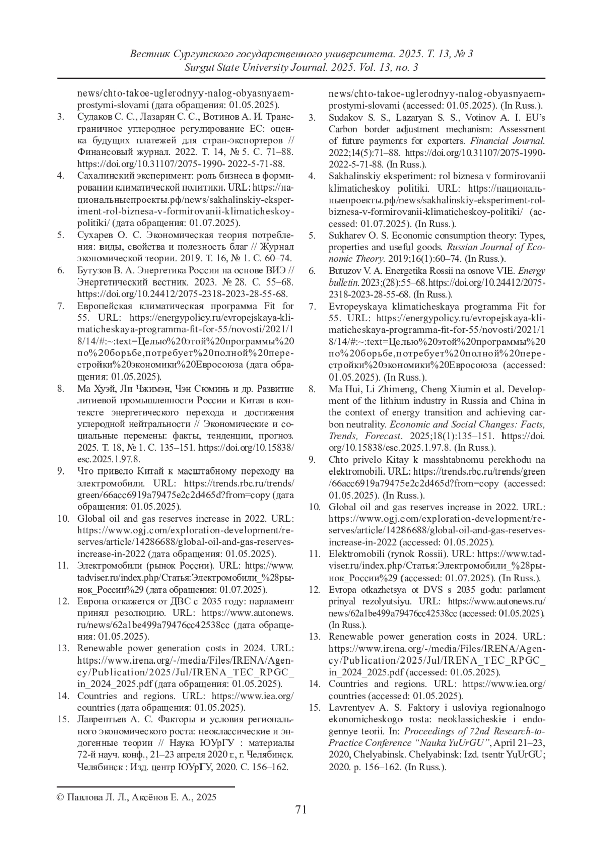 ПАВЛОВА Л. Л., АКСЁНОВ Е. А. ТЕОРЕТИЧЕСКИЕ ПОДХОДЫ К НАПРАВЛЕНИЯМ ЭКОНОМИЧЕСКОГО РАЗВИТИЯ СТРАН ДЛЯ ОБЕСПЕЧЕНИЯ ИХ ЭНЕРГЕТИЧЕСКОЙ НЕЗАВИСИМОСТИ // ВЕСТНИК СУРГУТСКОГО ГОСУДАРСТВЕННОГО УНИВЕРСИТЕТА. 2025. ТОМ 13, № 1
