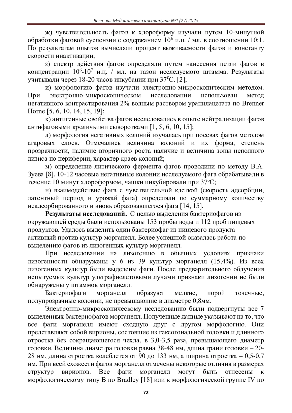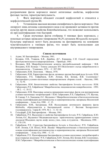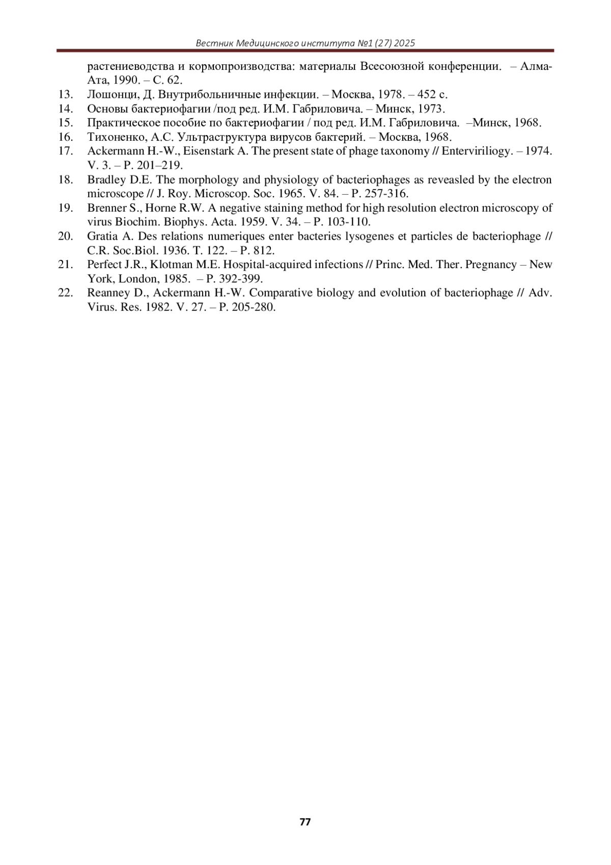 6. Габрилович, И.М. Биологические свойства бактериофагов Serratia marcescens /И.М. Габрилович, Р.Х. Гайрабеков// Микробиология, эпидемиология и микробиология. -1992. - № 2. - С. 10-12.