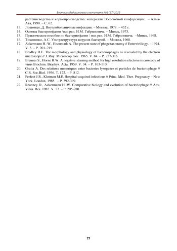 8. Габрилович, И.М., Батурицкая, Н.В. Исследование литического фермента фагов Klebsiella, образующегося в бактериальной клетке // Вестник Белорусского госуниверситета. Серия II. 1970. № 2. - С. 42-44.