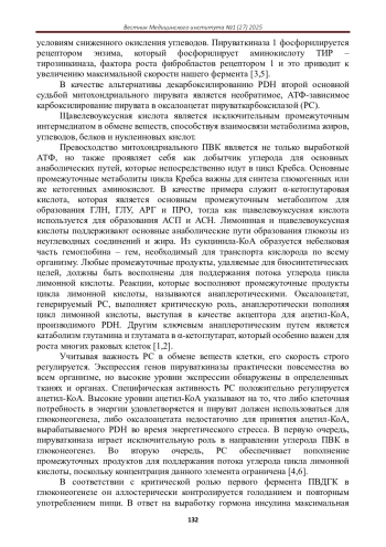 Пируват занимает критический узел в центральном углеродном метаболизме. Измененный метаболизм пирувата может вызвать заболевание. Нарушения метаболизма пирувата тесно связаны с развитием таких заболеваний, как рак, нейродегенеративные расстройства, сердечная недостаточность и другие состояния, которые будут подробно рассмотрены в обзоре. Многие раковые клетки частично определяются метаболическим переключением, называемым эффектом Варбурга, при котором гликолитический поток углерода сильно повышается, а окислительное фосфорилирование значительно понижается. Метаболитов, участвующих в этом обмене веществ, достаточно; они различаются в зависимости от вида онкологии. В данном обзоре будут обсуждаться основные субъединицы, такие как PKM2, HIF1, p53, и их связи с обменом ПВК. Также рассматриваются потенциальные методы лечения.