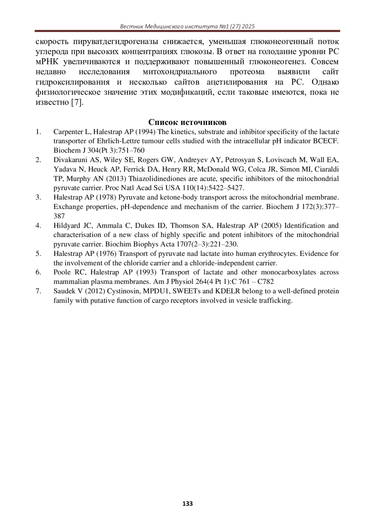 5. Halestrap AP (1976) Transport of pyruvate nad lactate into human erythrocytes. Evidence for the involvement of the chloride carrier and a chloride-independent carrier.