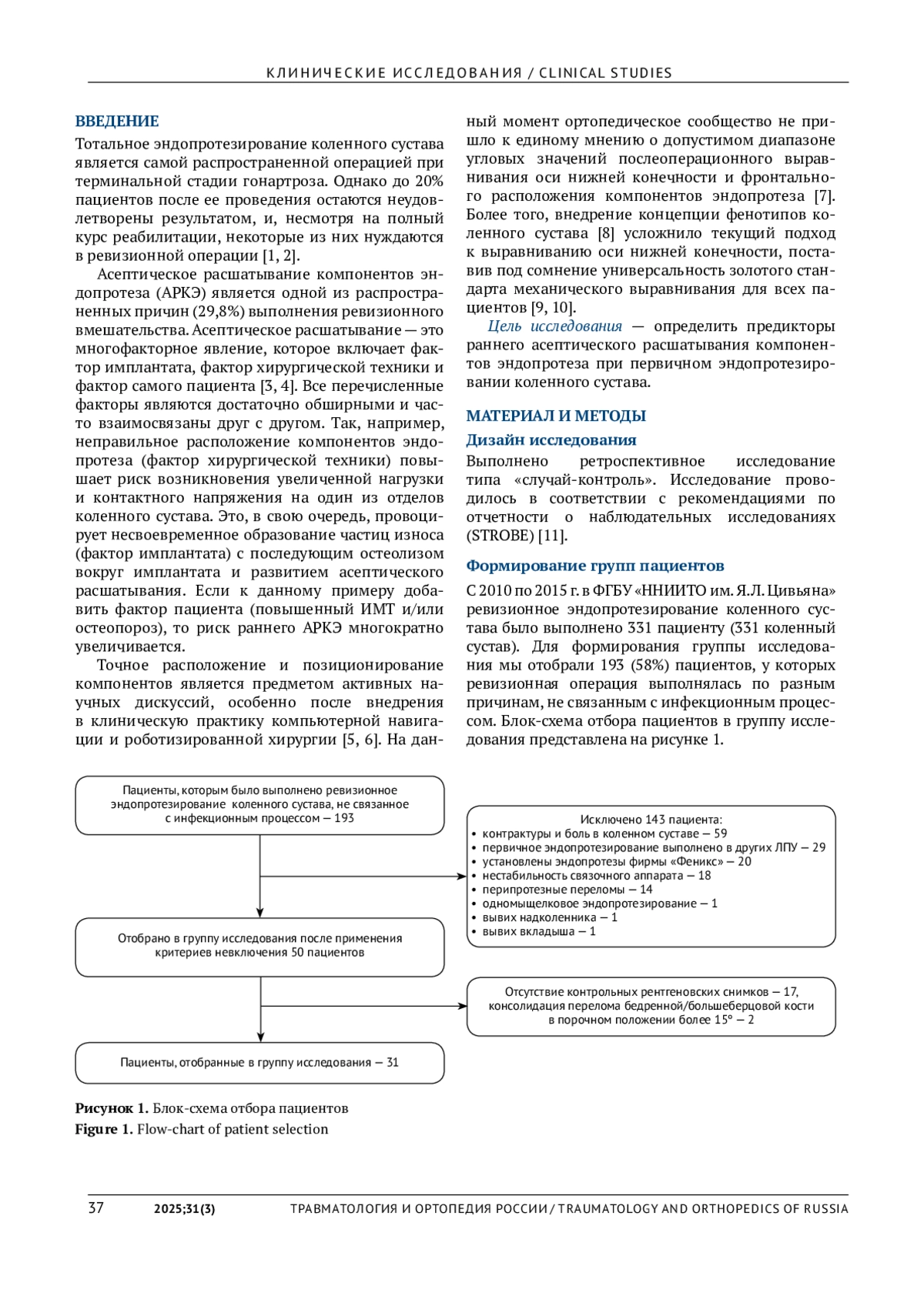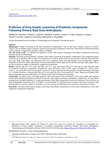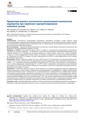 Цель исследования — определить предикторы раннего асептического расшатывания компонентов эндопротеза при первичном эндопротезировании коленного сустава.
