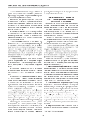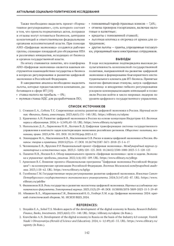1. Стоякин Е. А., Соболь Т. С. Современные аспекты развития цифровой экономики в России. Научный вестник: Финансы, банки, инвестиции. 2023;4(65):131-140. URL: https://elibrary.ru/ralpmc