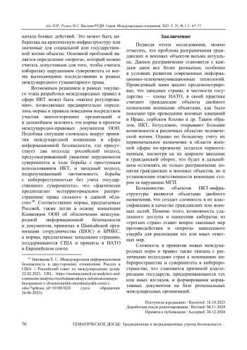 5. Рамич М. С., Пискунов Д. А. Секьюритизация информационного пространства: от конструирования норм до создания правовых режимов // Вестник Российского университета дружбы народов. Серия: Международные отношения. 2022. Т. 22, № 2. C. 238-255. ;. DOI: 10.22363/2313-0660-2022-22-2-238-255 EDN: KSSXFK