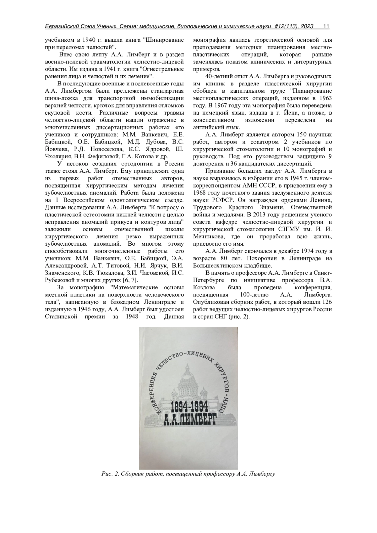 6. Безруков, В.М. Основные научные направления в деятельности А.А. Лимберга в отечественной литературе / В.М. Безруков, Т.М. Лурье, Н.Н. Смирнова // Актуальные вопросы челюстно-лицевой хирургии - СПб., 1995 г. - С 20-22.