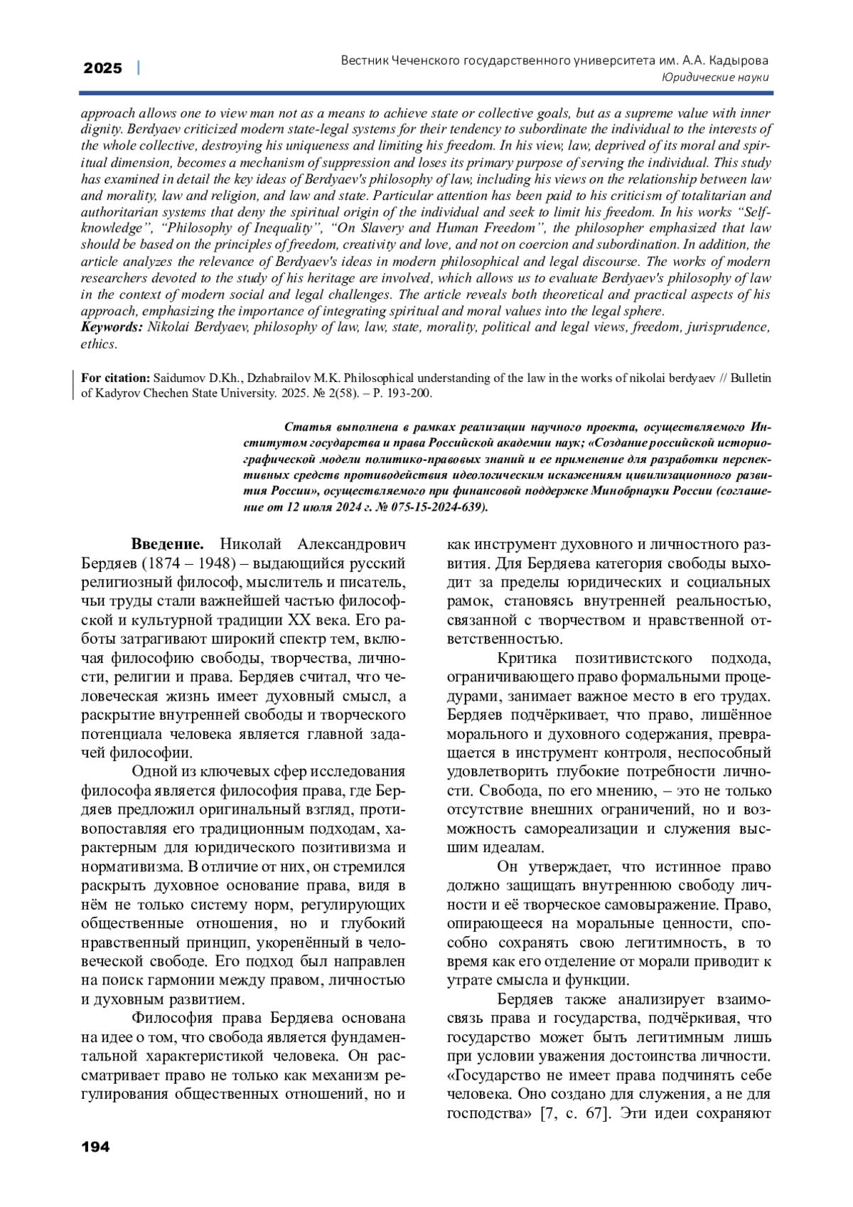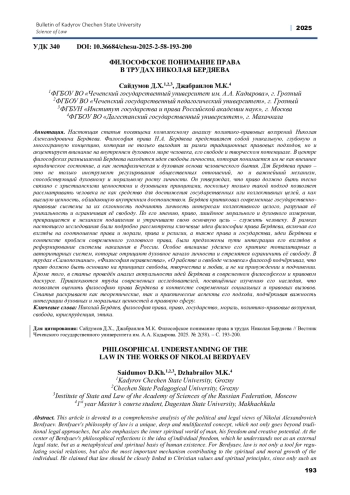 10. Дендиберя А.А. Идеи Н.А. Бердяева о государстве и праве // Проблемы философии права. 2018. №4. - С. 112-120.