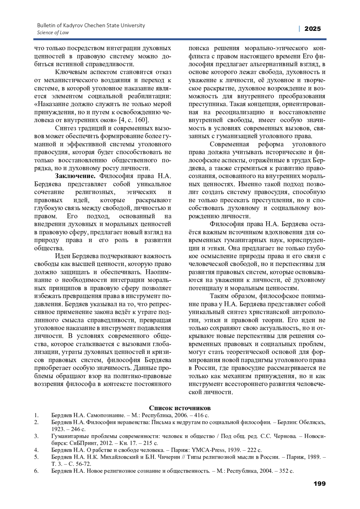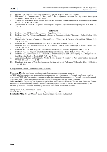8. Найденко Е.А., Тонковидова А.В., Битарова Л.Г. Философия самопознания Н.А. Бердяева // Культурная жизнь юга России. 2020. №3. - С. 78-85. EDN: QIVKLK