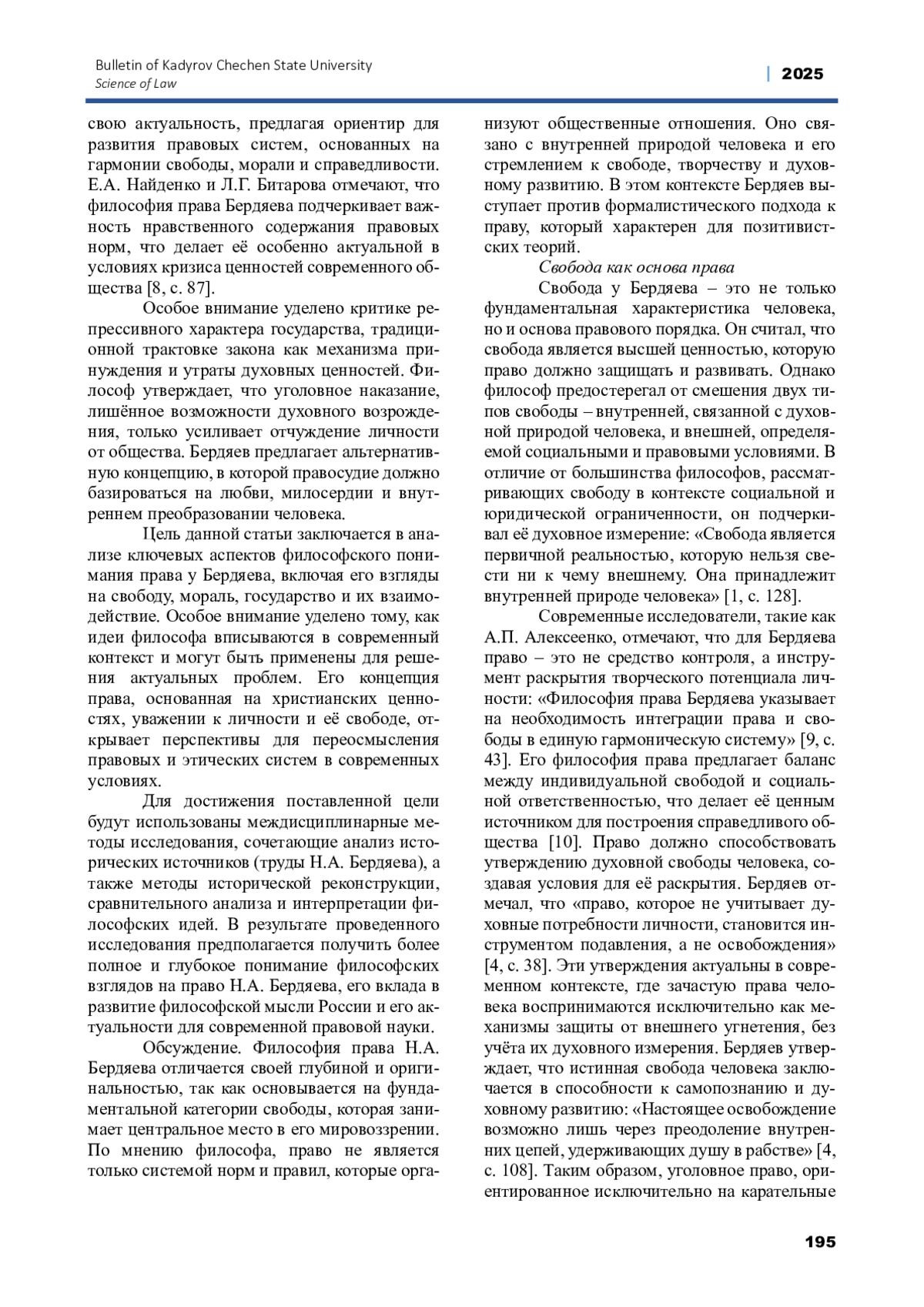 9. Алексеенко А.П. Право и государство в трудах Н.А. Бердяева // Территория новых возможностей. Вестник ВГУЭС. 2016. №1. - С. 45-52.