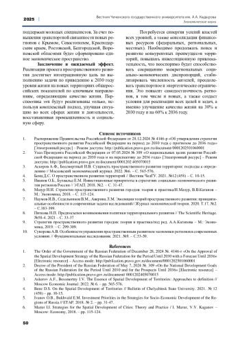 Статья: СТРАТЕГИЯ ПРОСТРАНСТВЕННОГО РАЗВИТИЯ И ЕЕ ВЛИЯНИЕ НА ЭКОНОМИКУ РЕГИОНОВ РОССИЙСКОЙ ФЕДЕРАЦИИ (2025)