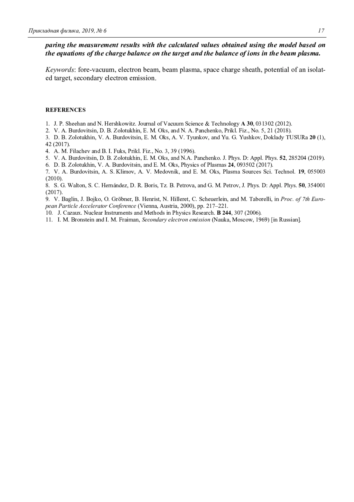 5. Burdovitsin V. A., Zolotukhin D. B., Oks E. M., Panchenko N. A. // J. Phys. D: Appl. Phys. 2019. Vol. 52. Р. 285204.